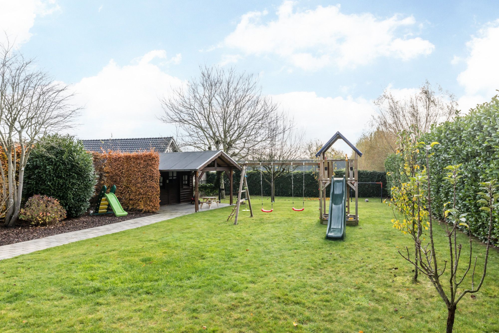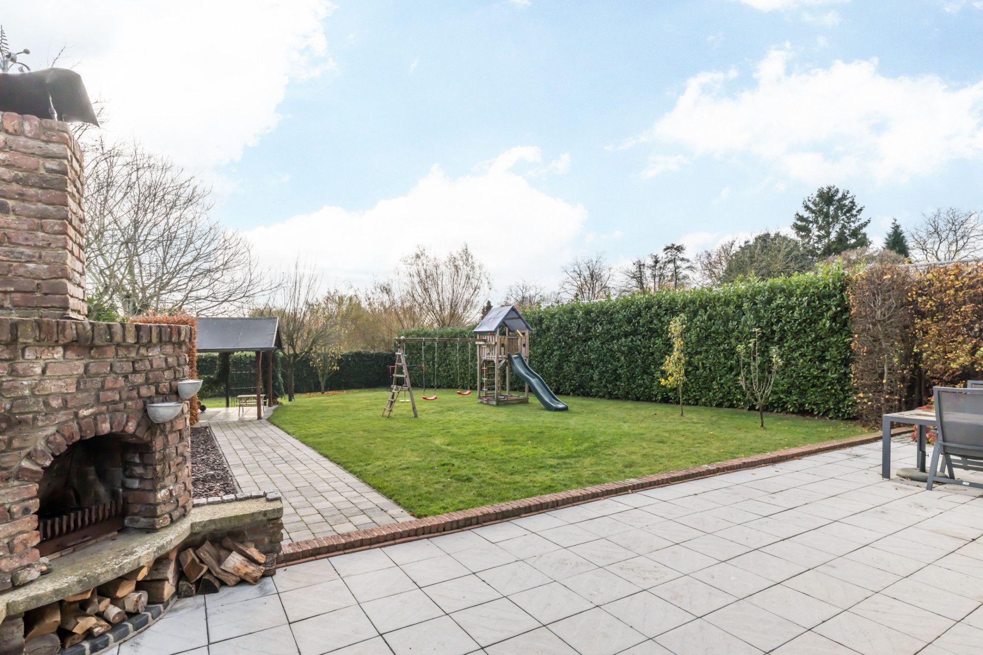 - inpandige garage met tegelvloer en dubbele houten garagepoort.