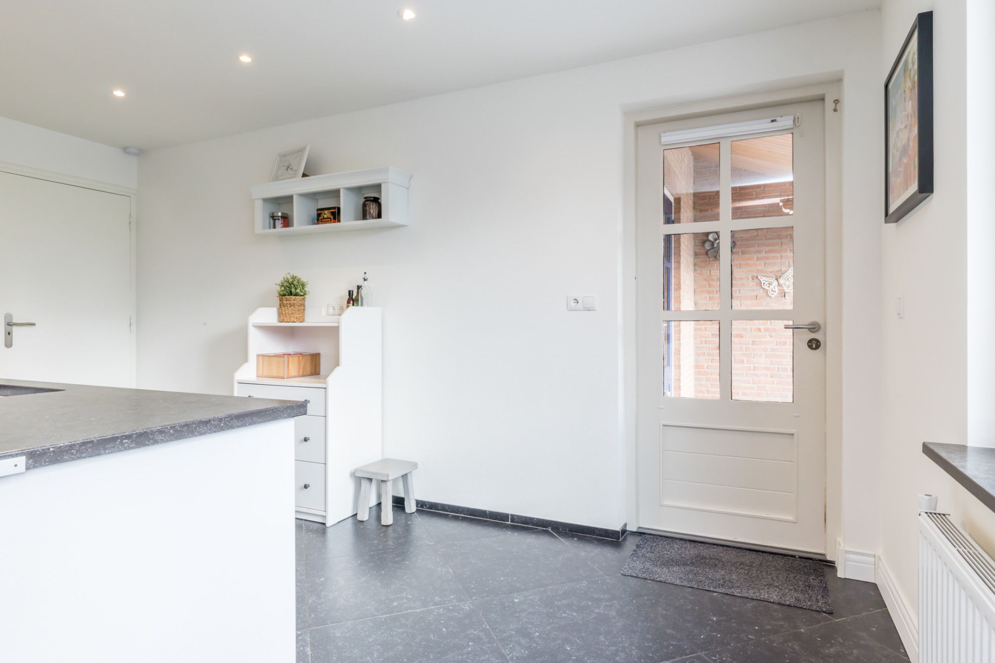 - bijkeuken met tegelvloer, gootsteen en met aansluitingen voor witgoed