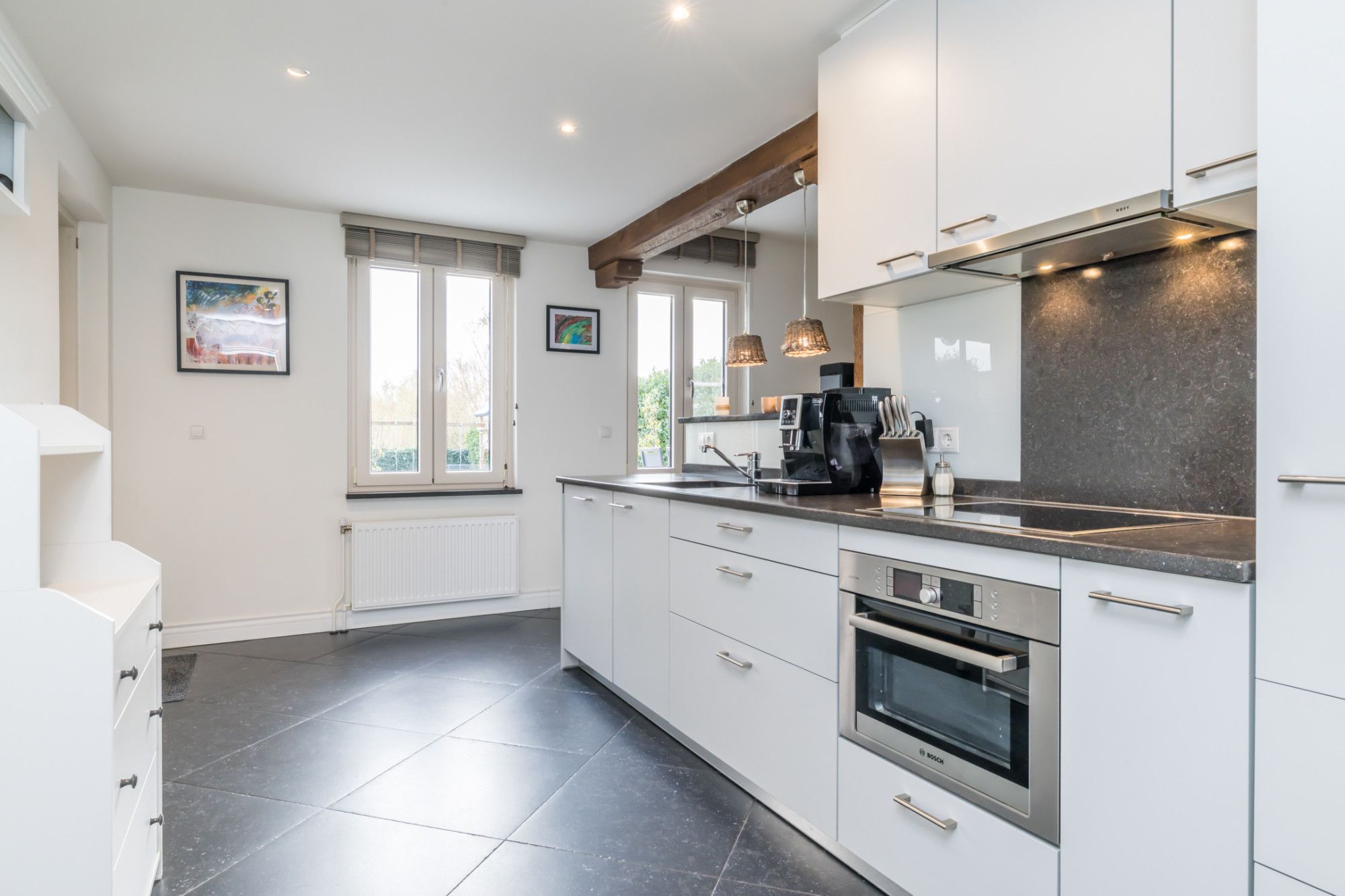 keramische kookplaat, afzuigkap, vaatwasser en combi-oven.