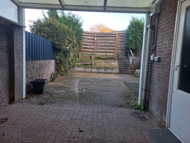 -Wasberging (3.00 x 2.00 m) met tegelvloer, aansluitingen witgoed en toegangsdeur naar de omsloten tuin met toegang tot prive parkeerplaats. Tuin met overkapping.