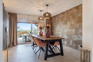 Entree/hal met vernieuwde meterkast, een modern toilet met fontein en toegang tot de woonkamer, het souterrain en de eerste verdieping. De ruime L-vormige woonkamer (ca. 37,8 m²) is voorzien van een sfeervolle schouwpartij met open haard. Aangrenzend bevindt zich de eetkamer (ca. 13,2 m²) en de halfopen keuken (ca. 10,9 m²). De moderne keuken is uitgerust met een U-vormige opstelling, een keramisch werkblad en hoogwaardige inbouwapparatuur, waaronder een Quooker, combi-oven, oven, 4-pits inductiekookplaat, afzuigkap, vaatwasser, koelkast en diepvries. De gehele begane grond is voorzien van prachtige tegelvloer met vloerverwarming.