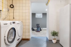 Het souterrain biedt praktische ruimtes, waaronder een provisiekelder, een inpandig bereikbare garage (28,3 m²), een witgoedruimte met c.v.-ketel (Remeha Calenta, eigendom, uit 2016) en een aparte hobbyruimte (circa 24 m2) die tevens van buitenaf bereikbaar is.