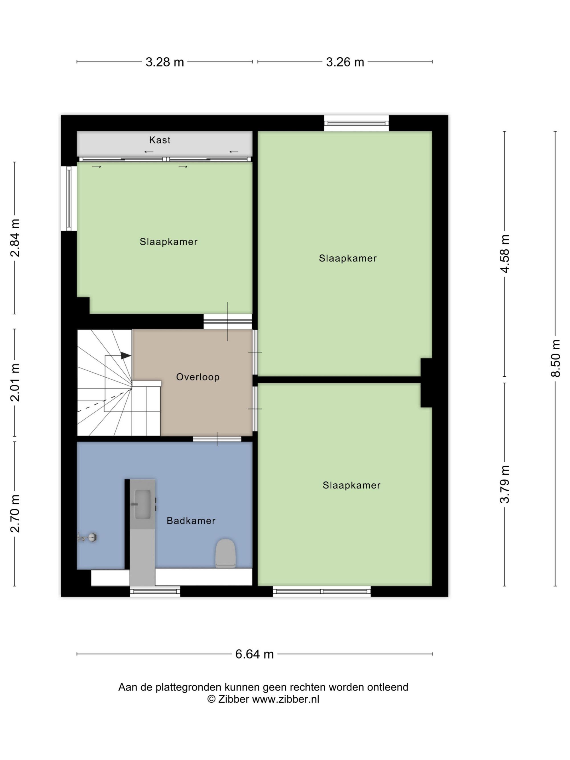 Slaapkamer 3 (3.28 x 2.84 m) met op maat gemaakte vaste kastenwand.
