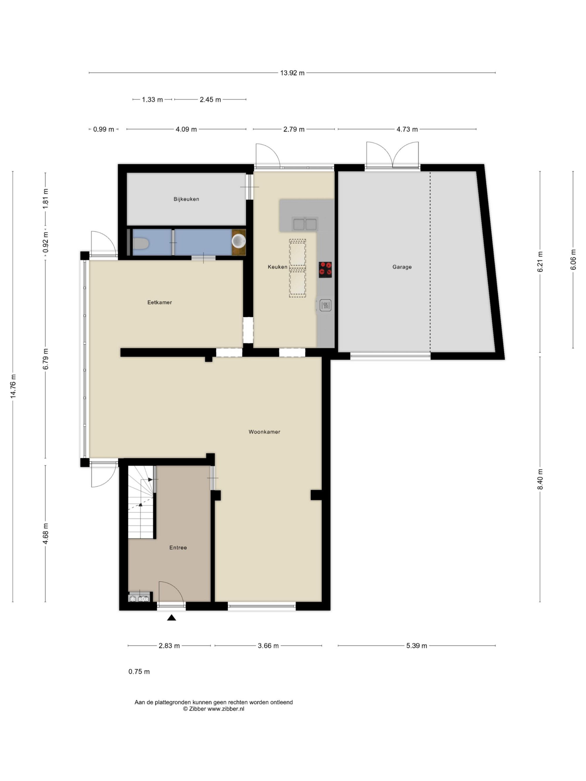 Bijkeuken (4.09 x 1.81 m) alwaar CV installatie, stortbak met warm- en koud wateraansluiting en wasautomaat- en drogeraansluiting.