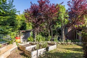De ruime tuin biedt verschillende gezellige hoekjes om van te genieten. Het terras achter de woning is ideaal voor buiten dineren of ontspannen, met toegang tot de oprit, waar u kunt parkeren op uw eigen terrein.