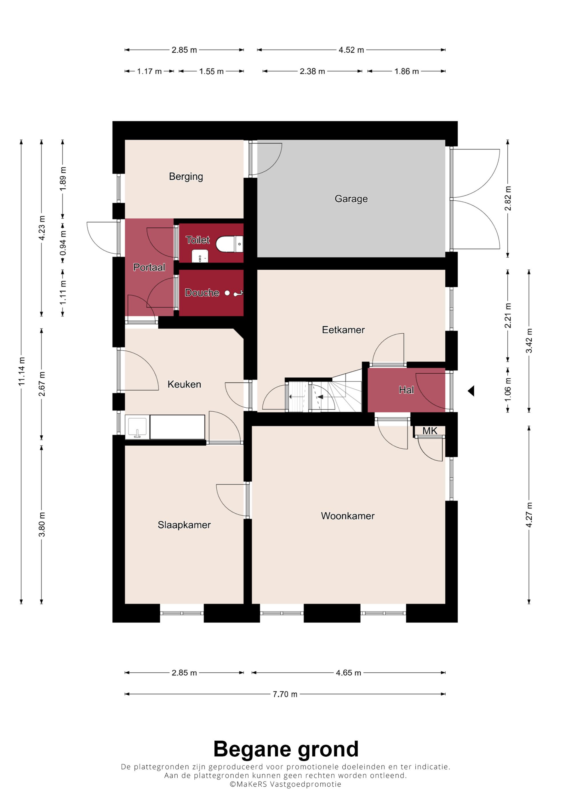 De hal geeft toegang tot de eetkamer en de woonkamer met meterkast. De woonkamer kent veel lichtinval en beschikt over authentieke details zoals een fraaie schouw met houtkachel en paneeldeuren. Verder is er heel praktisch een gelijkvloerse 1e slaap/hobbykamer aanwezig; ook te gebruiken als een speelkamer of thuiswerkplek. De keuken is voorzien van een eenvoudige combinatie met opstelling van boiler (Daalderop) en een loopdeur naar de diepe achtertuin. Vanuit de keuken is tevens via een portaal de toiletruimte met staand toilet toegankelijk, de badkamer met douche en een berging/bijkeuken en de inpandige garage te bereiken. Aangrenzend aan de keuken bevindt zich de eetkamer met trapopgang naar de eerste verdieping en een deur naar de praktische provisiekelder.