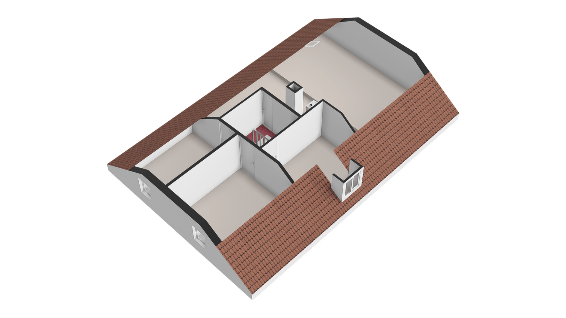 Via de overloop zijn de 3 riante slaapkamers en de zolderruimte toegankelijk. Op de zolderruimte is de opstelling voor de cv-ketel (Intergas CR, 1975, Eigendom). De ruime zolderruimte is ideaal voor het realiseren van extra kamers.