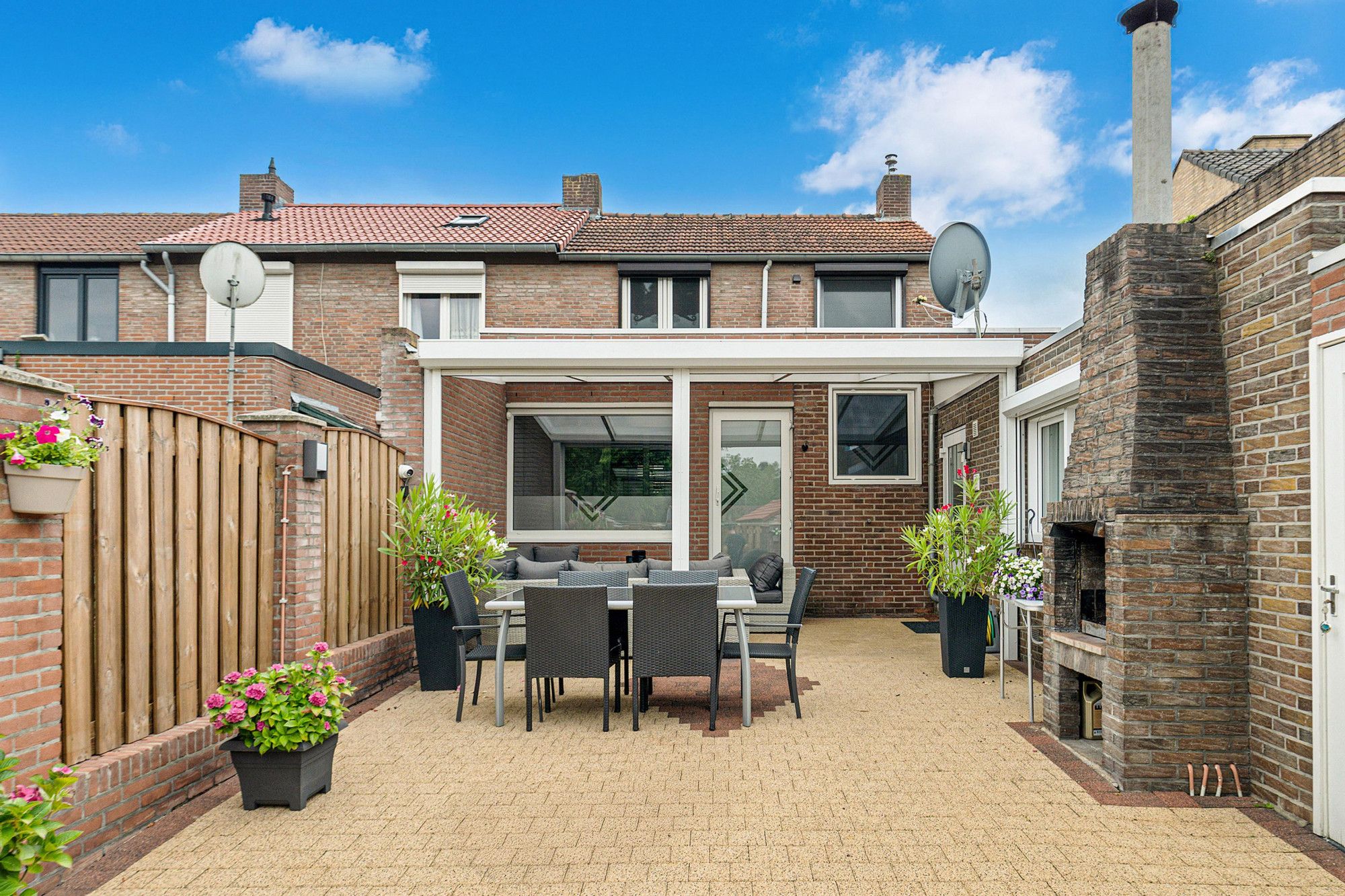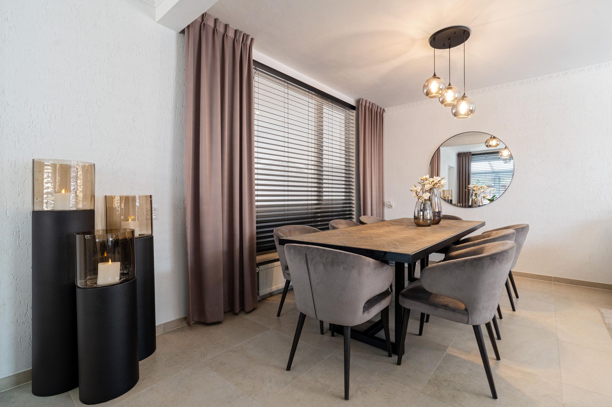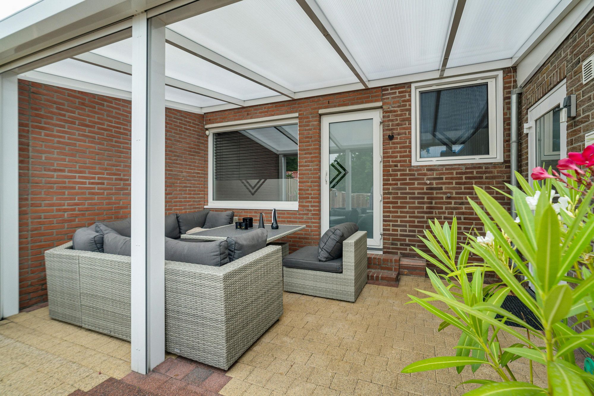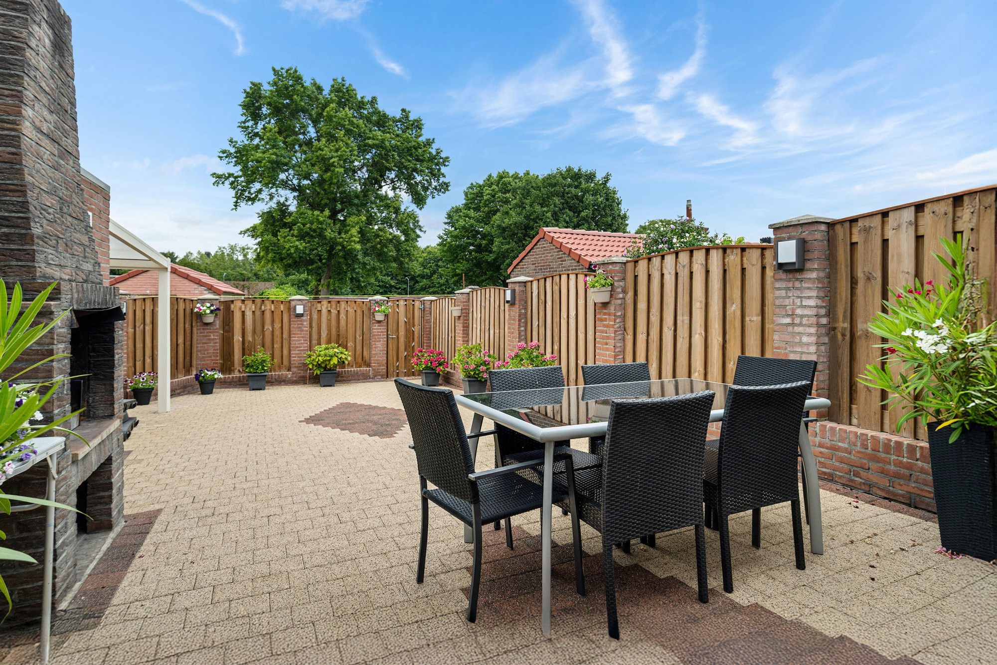 overkapping en mooi aangelegde tuin, onderhoudsarm. Grote oprit.