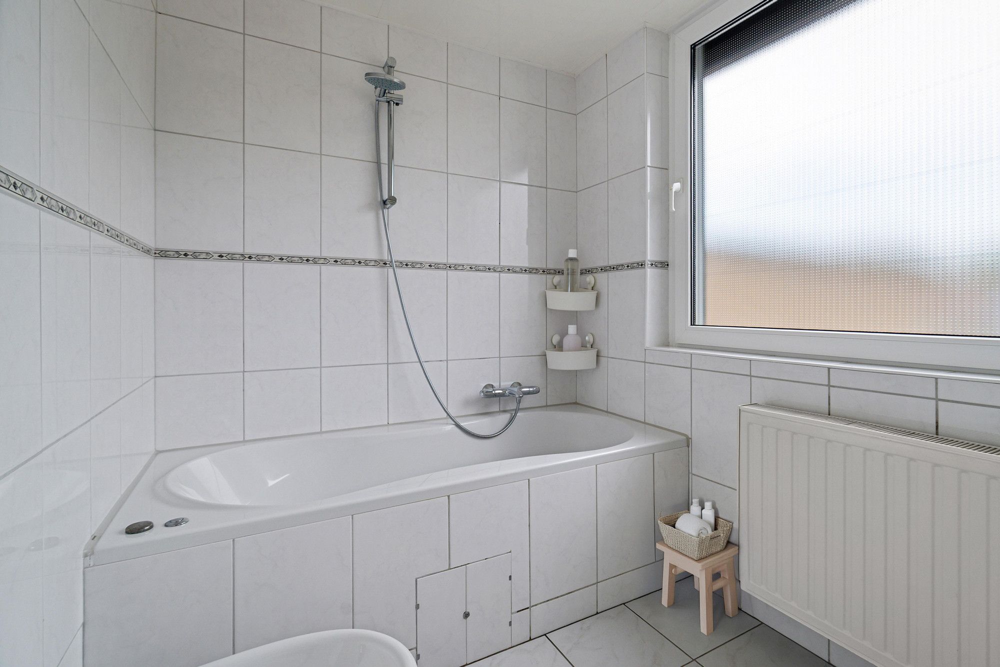 Volledig betegelde badkamer(2.70mx1.65m) met ligbad/douche combinatie, met whirlpool en vaste wastafel, bidet.