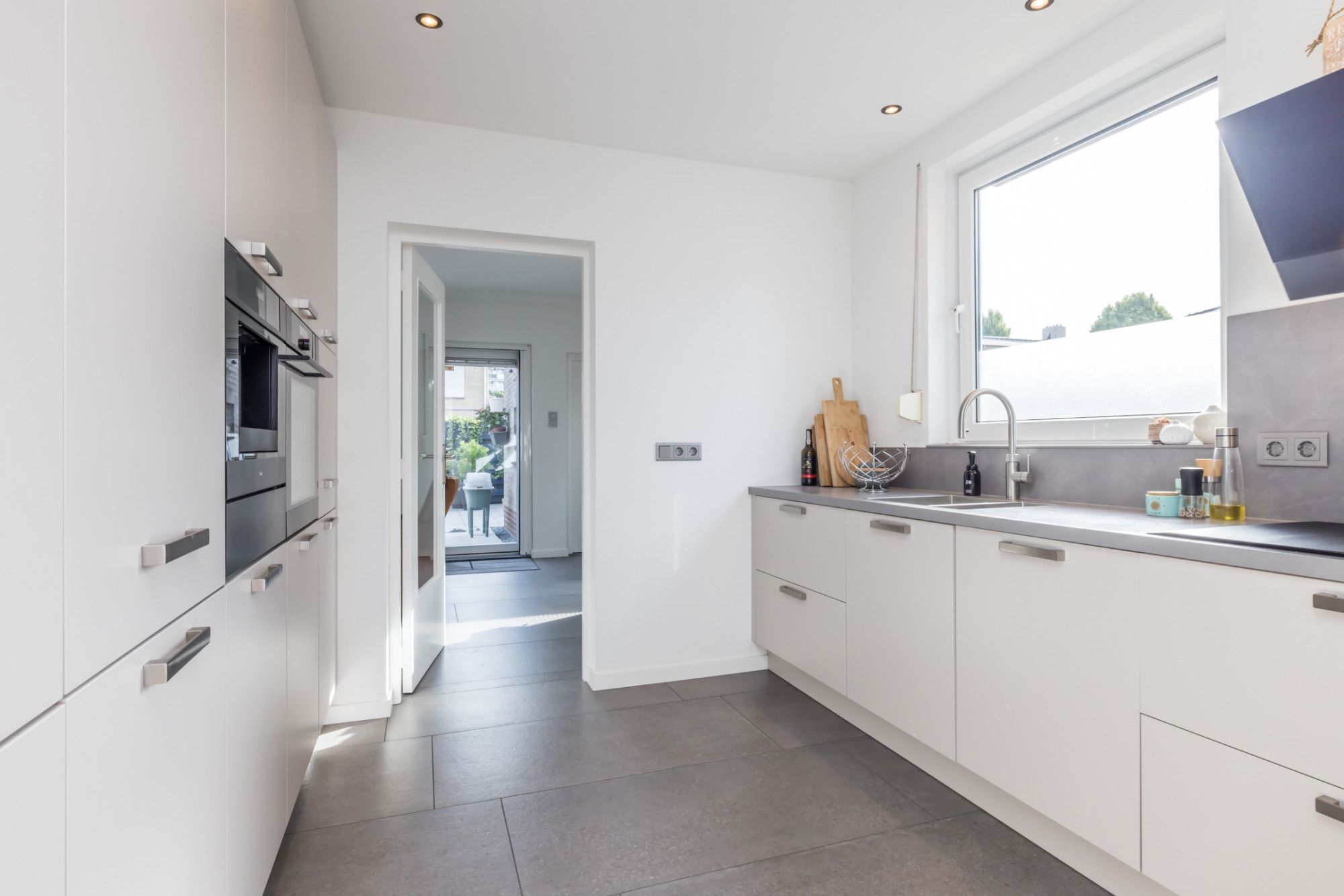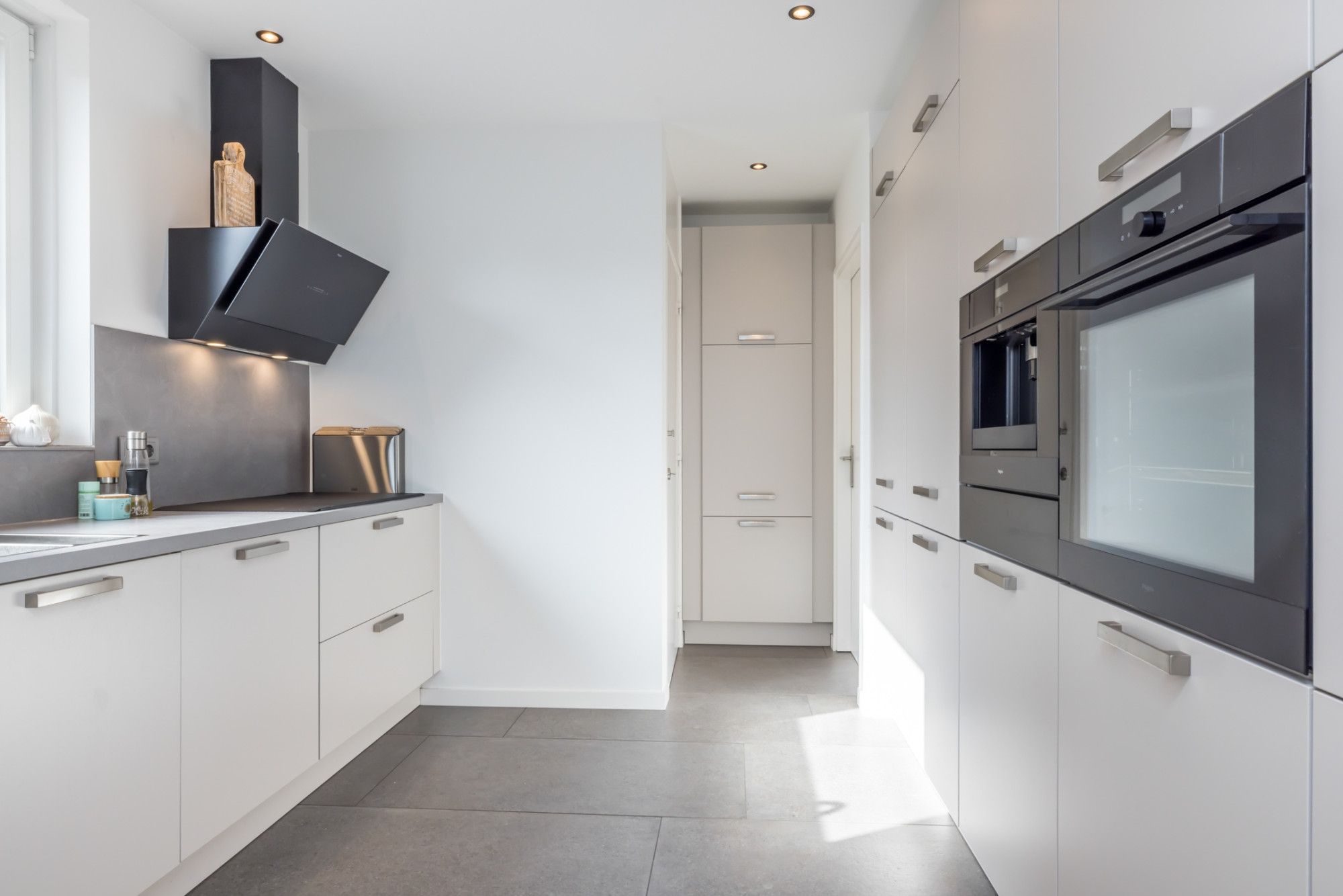 -Appratuur keuken is van 2021: inductie kookplaat, ingebouwd koffiezetapparaat, combi stoomoven, vaatwasmachine en een Quooker kraan