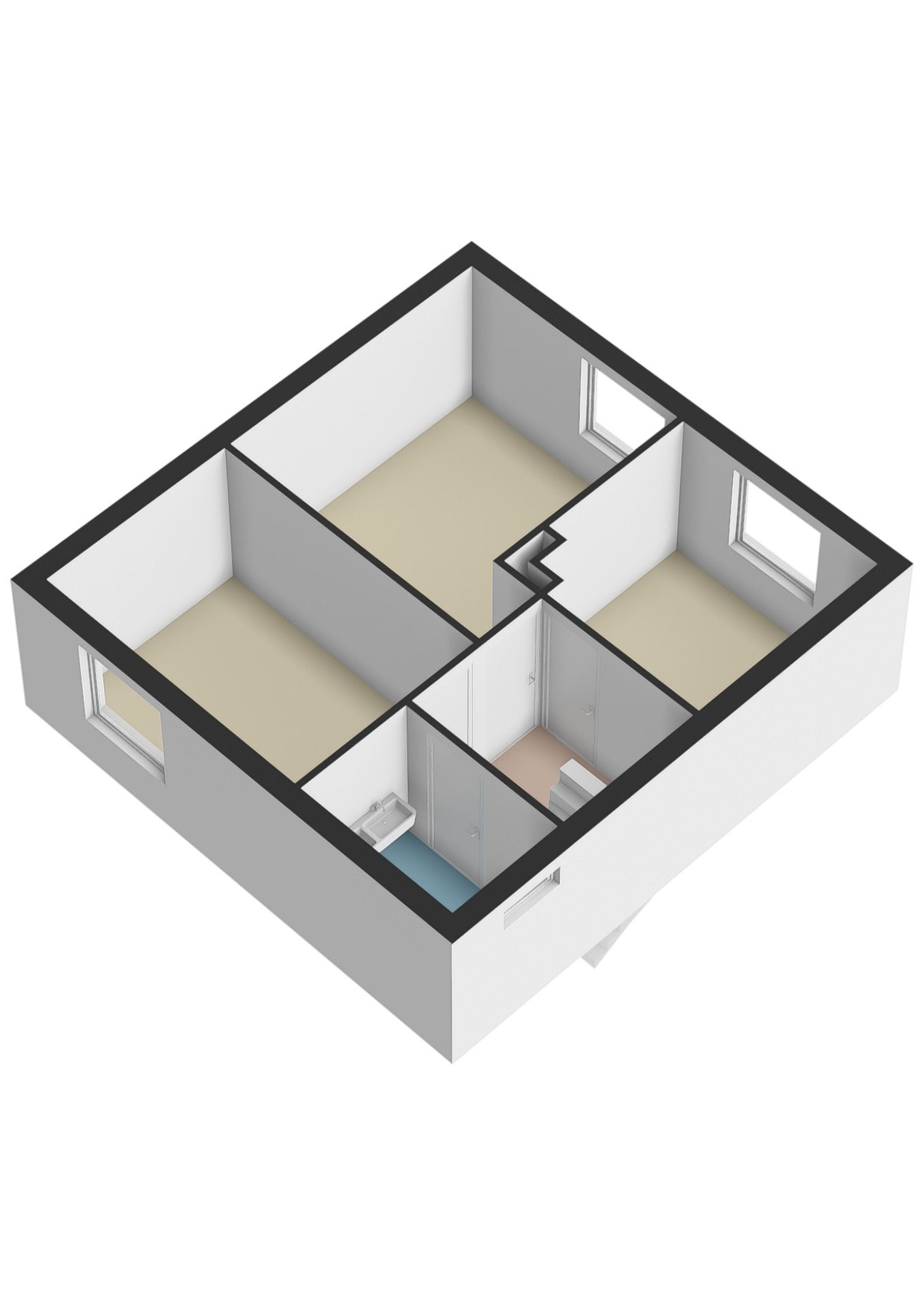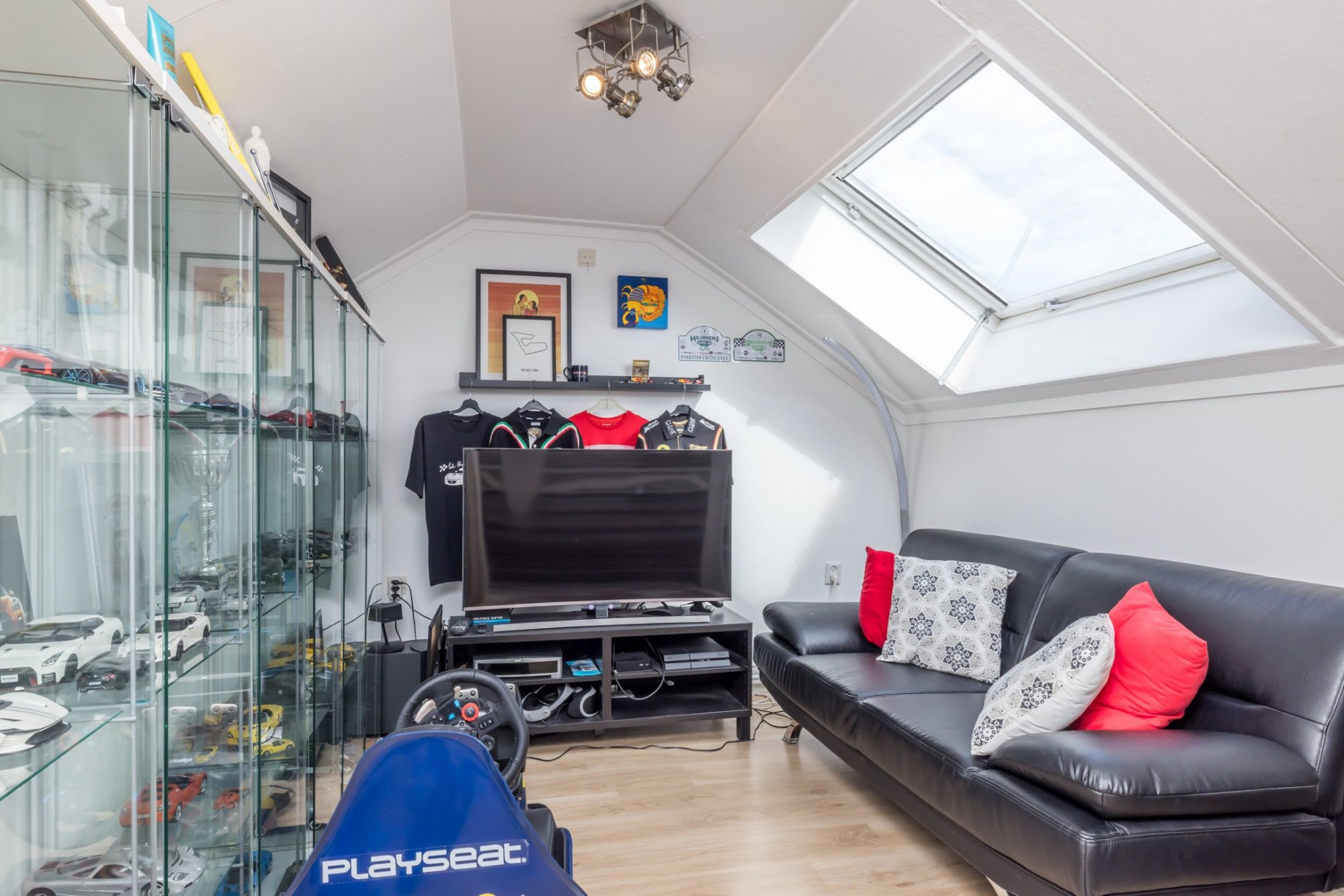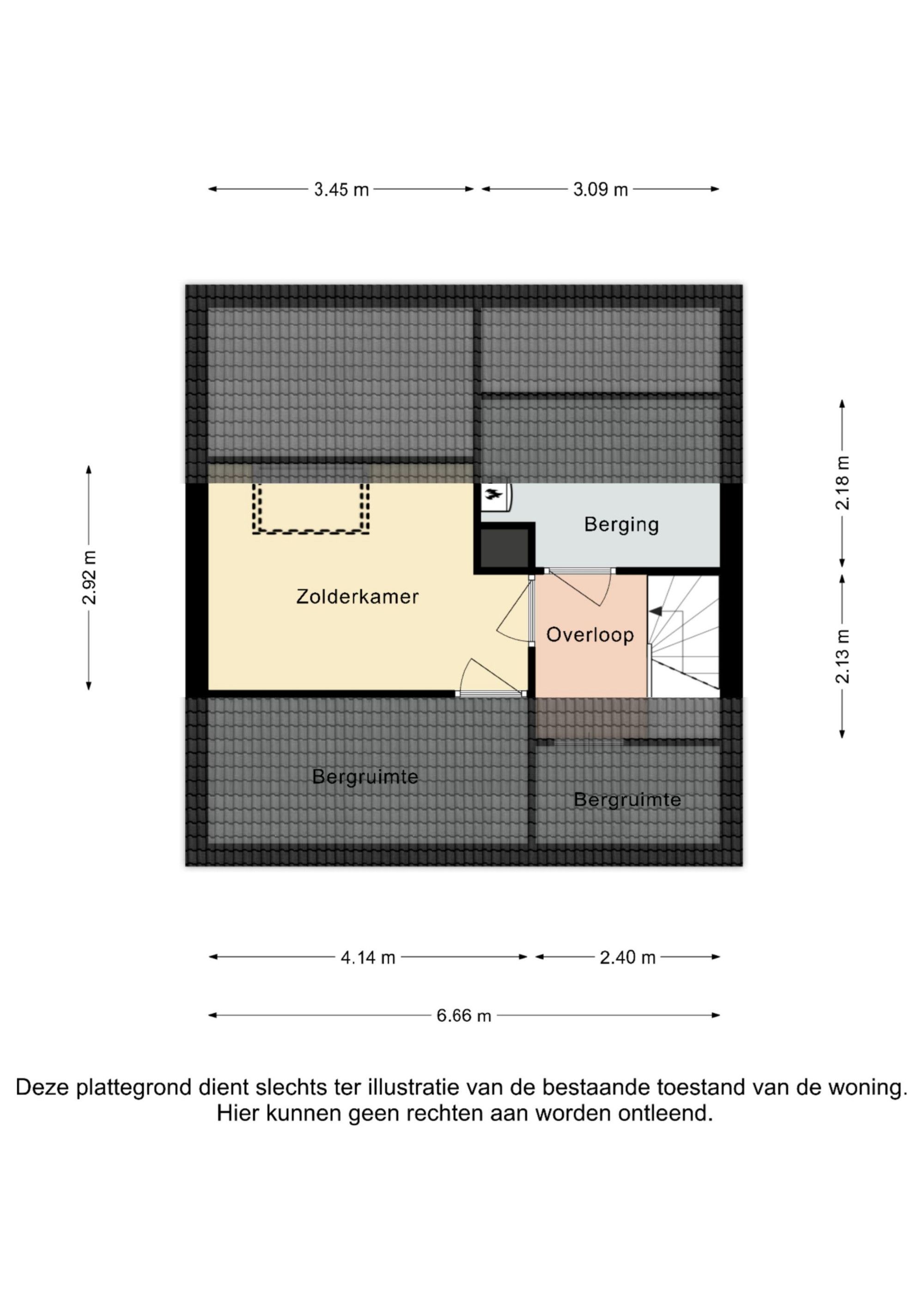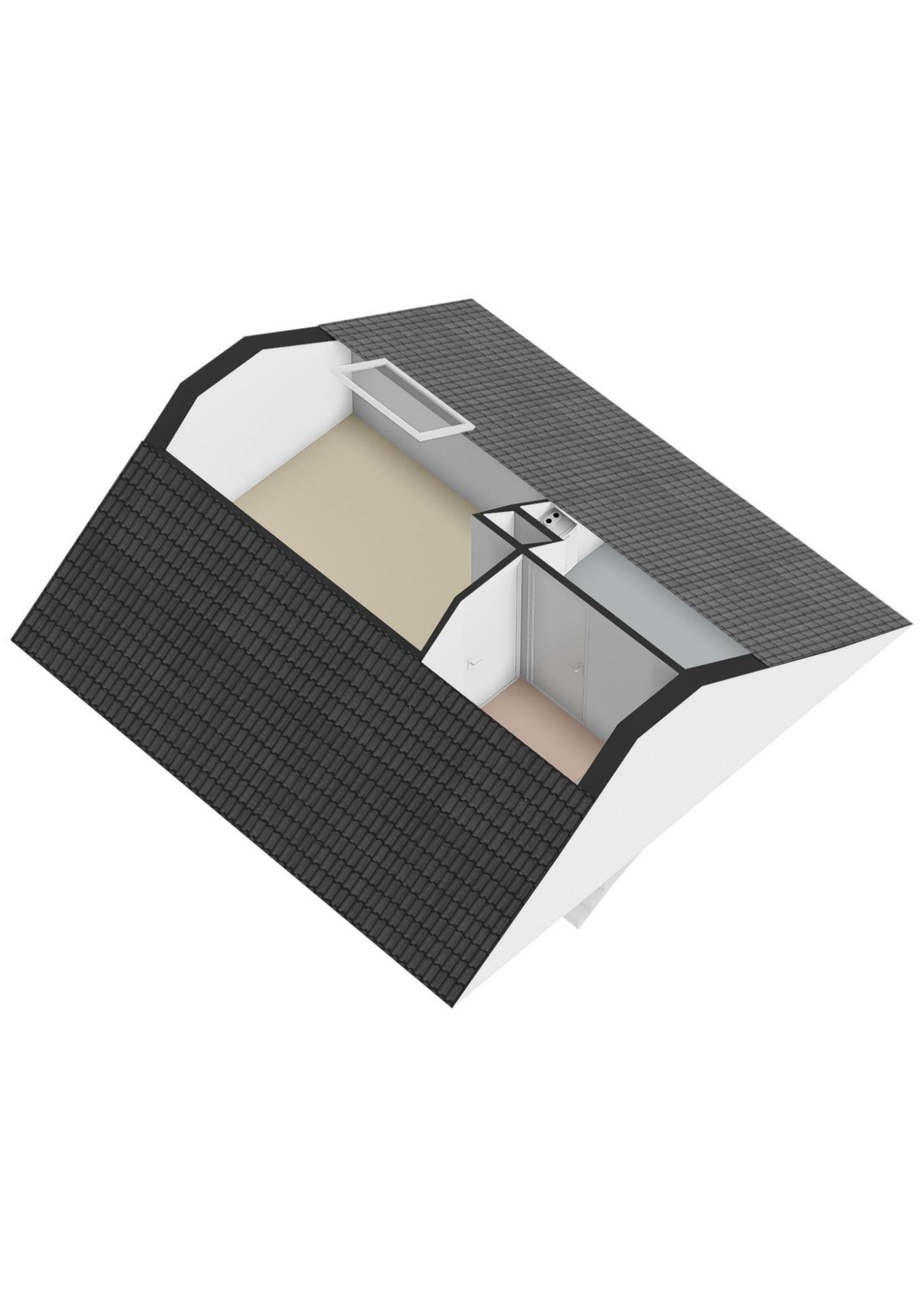 Bereikbaar met vaste trap. Overloop met toegang tot berging achterzijde met cv-ketel, berging voorzijde en slaapkamer met Velux-dakraam en toegang tot berging in dakschuinte voorzijde.