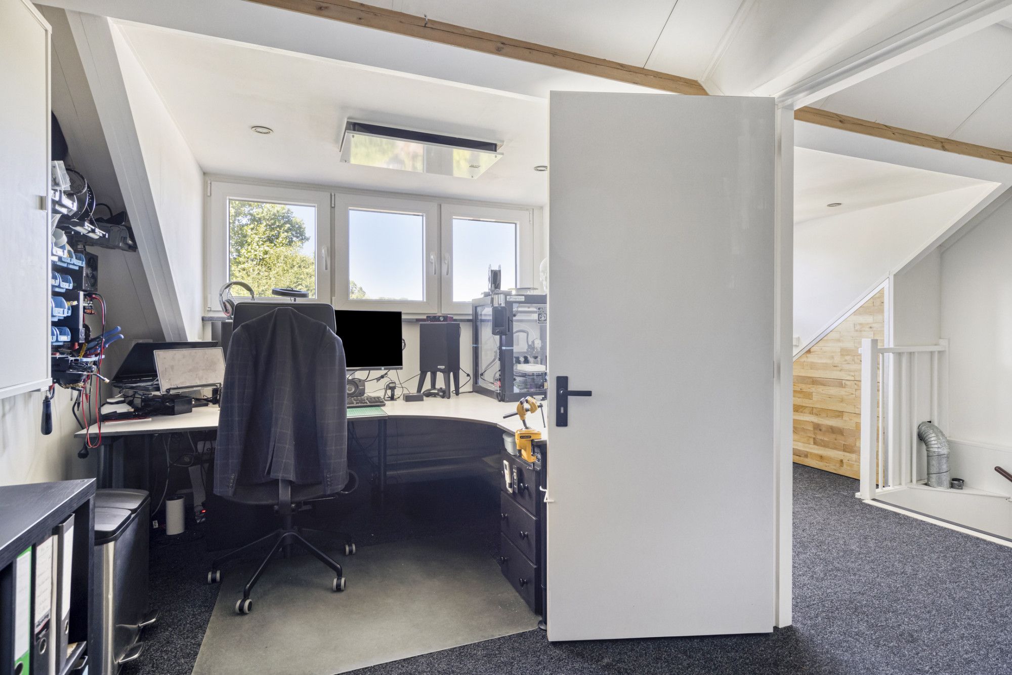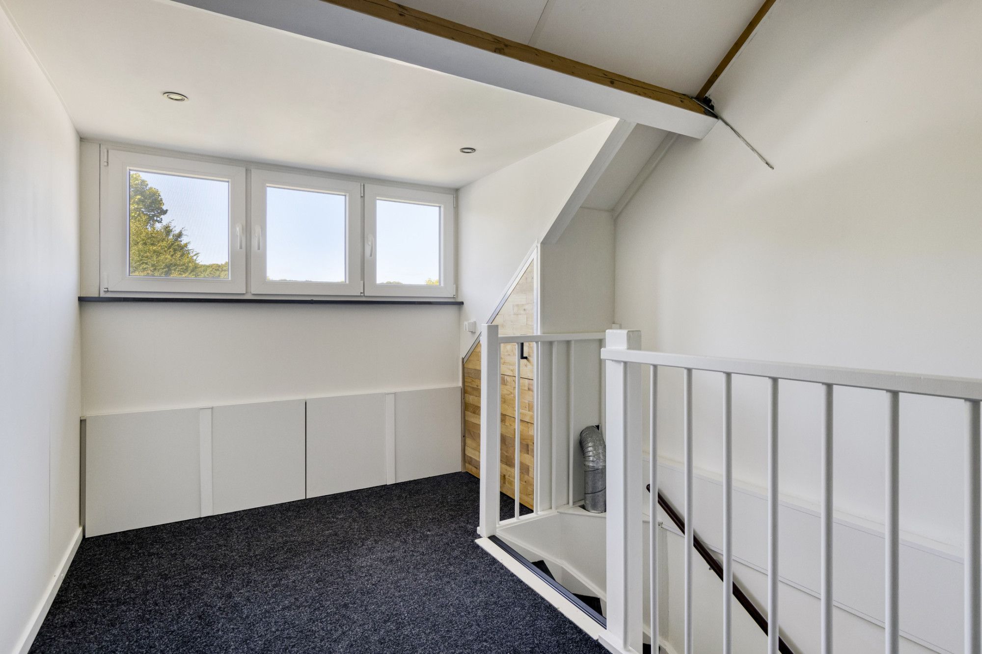 Bereikbaar via een vaste trap. De overloop geeft toegang tot een ruime zolderkamer met dakkapel, perfect als vierde slaapkamer, hobbyruimte of kantoor. Voor extra comfort is deze ruimte voorzien van airconditioning.