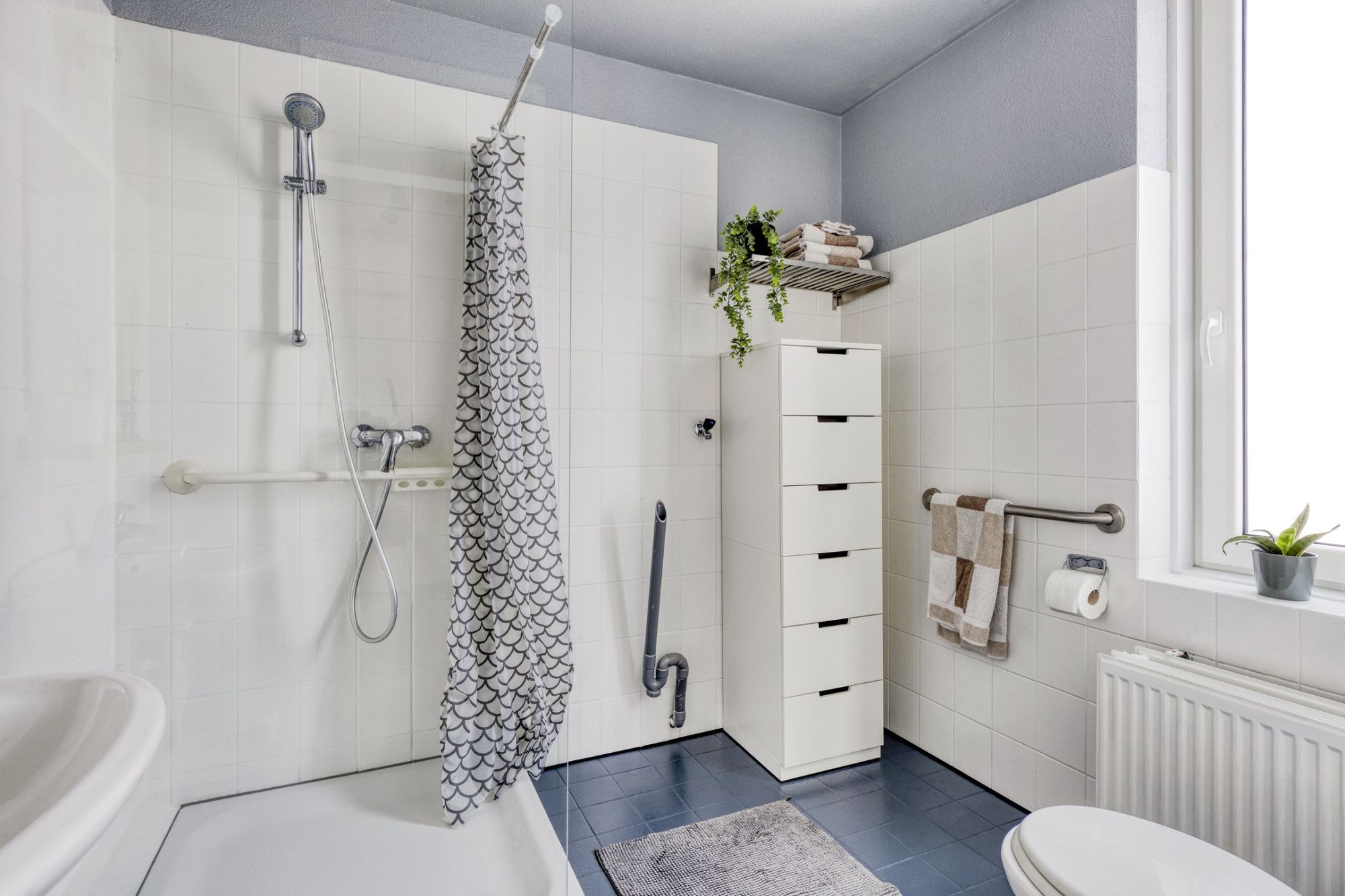 Op deze verdieping bevinden zich drie slaapkamers en een volledig betegelde badkamer met douche, vaste wastafel, toilet en witgoedaansluiting.
