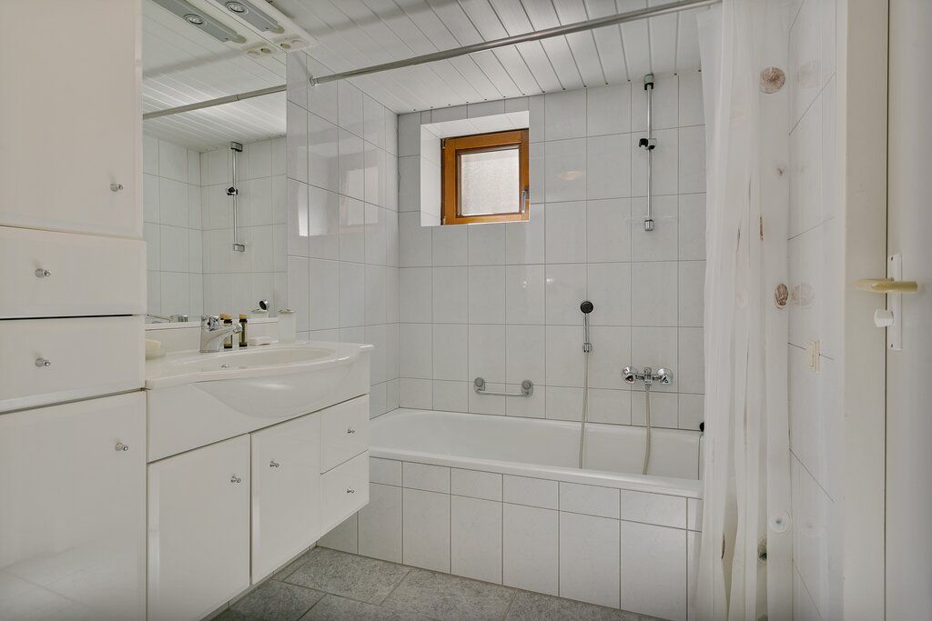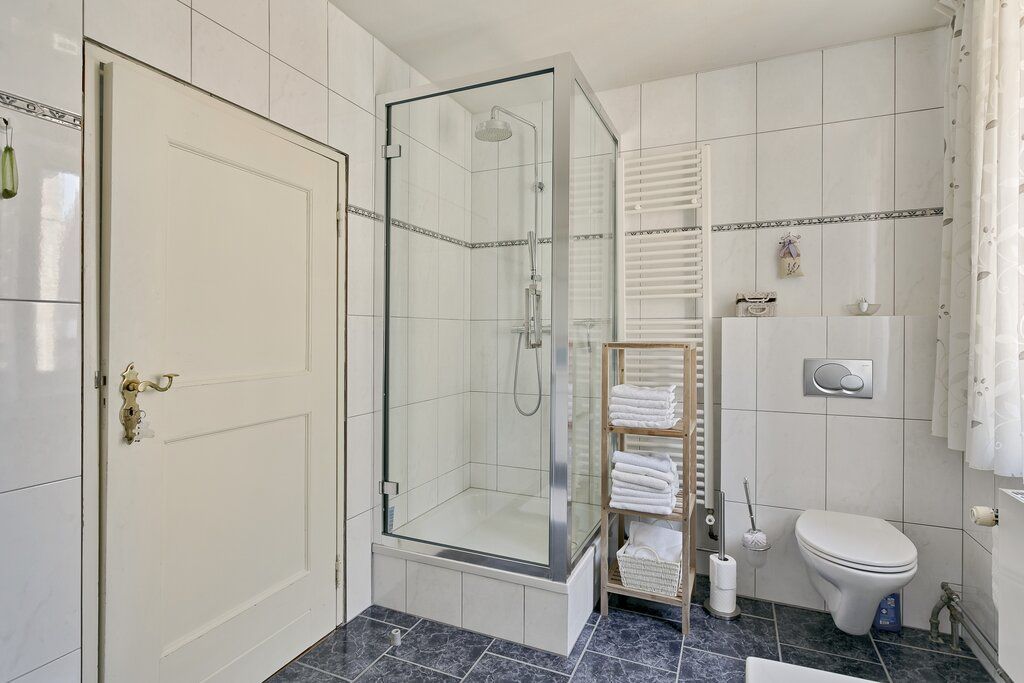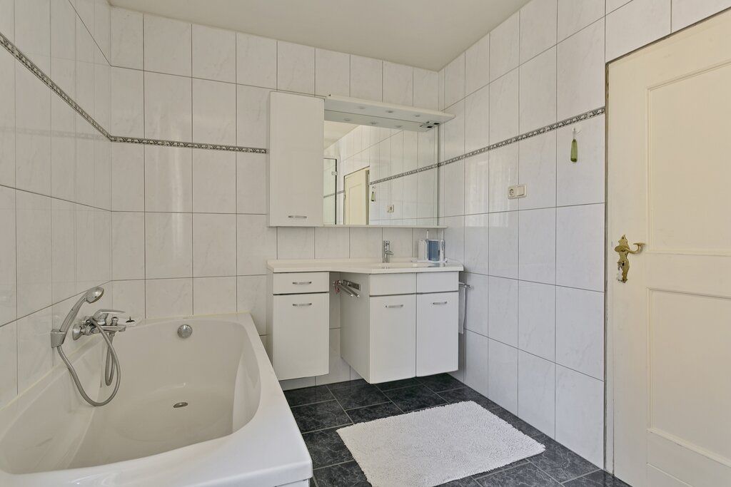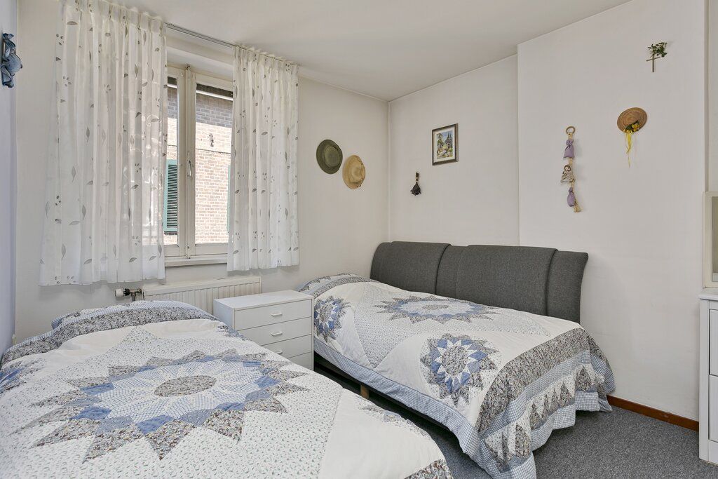 De slaapkamers zijn gelegen aan de voorzijde, waarvan één is voorzien van een vaste kastenwand. De volledig betegelde badkamer beschikt over een wastafel, tweede toilet, douche en ligbad.