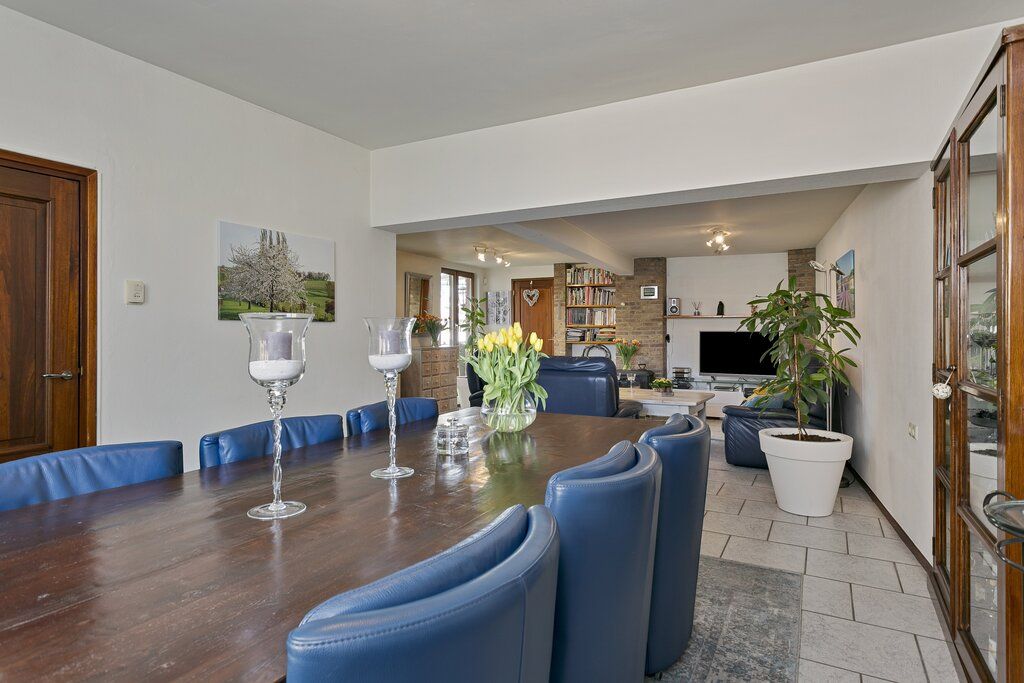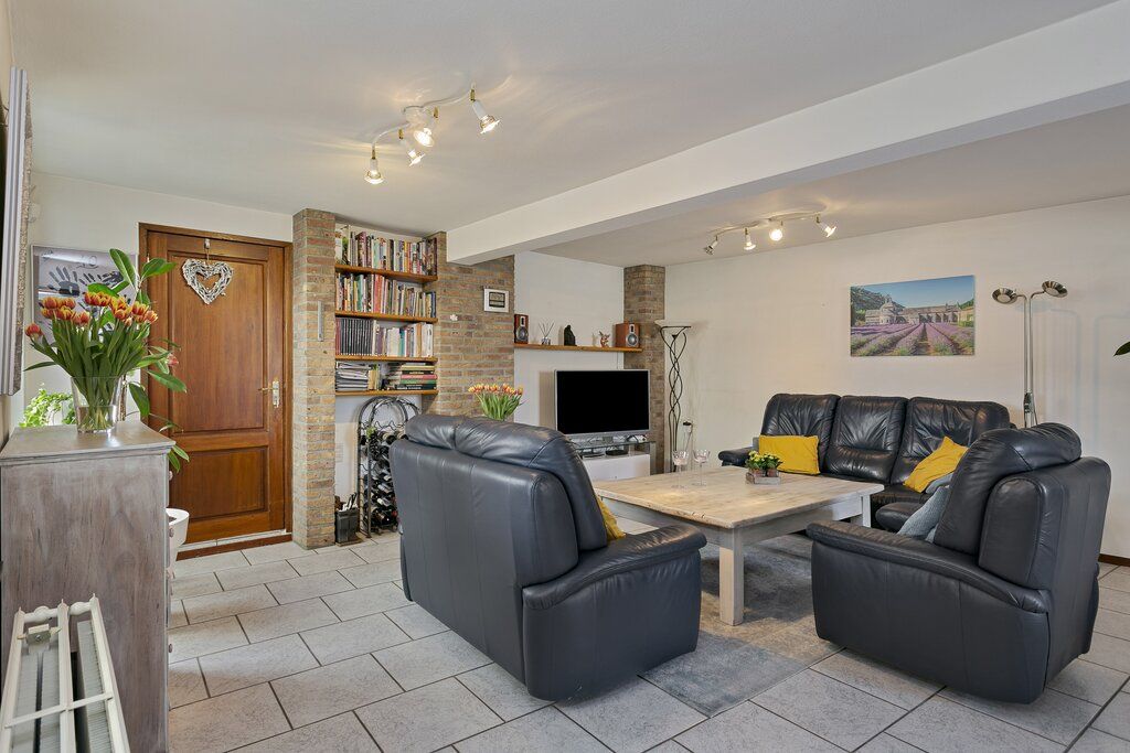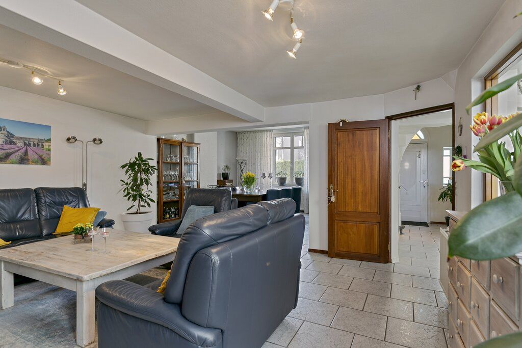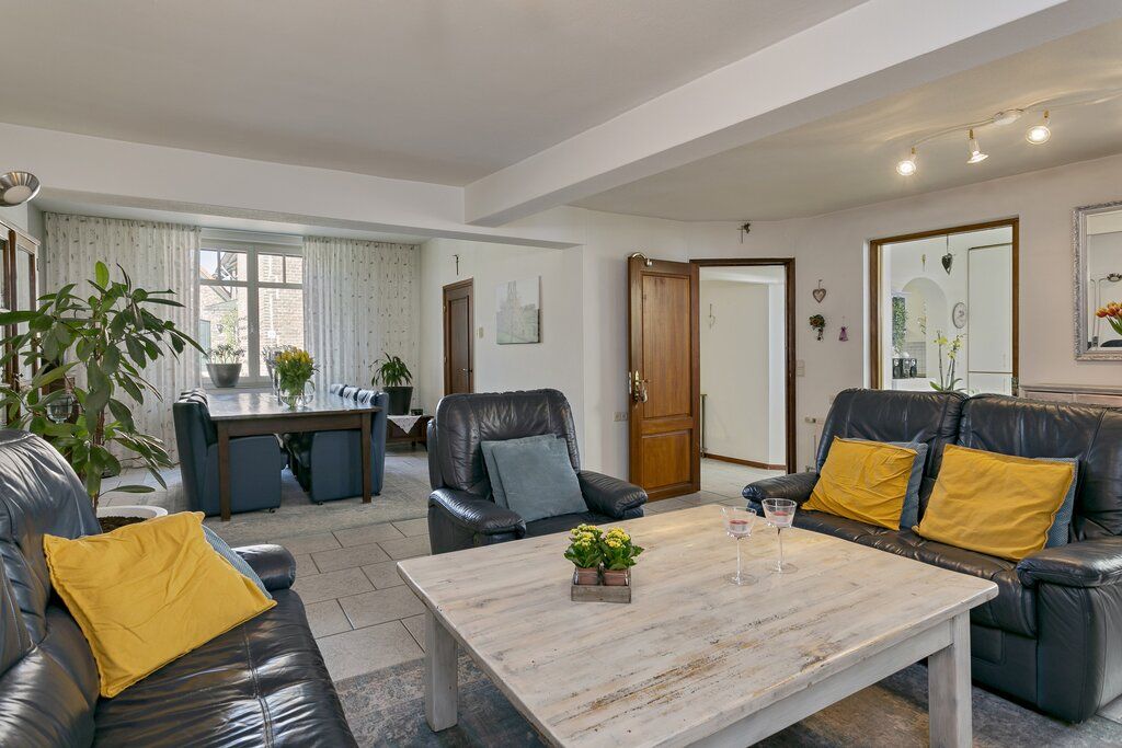 De ruime living (ca. 43 m²) is sfeervol ingedeeld in een zit- en woongedeelte en biedt toegang tot de eetkamer en een tweede hal met toiletruimte.