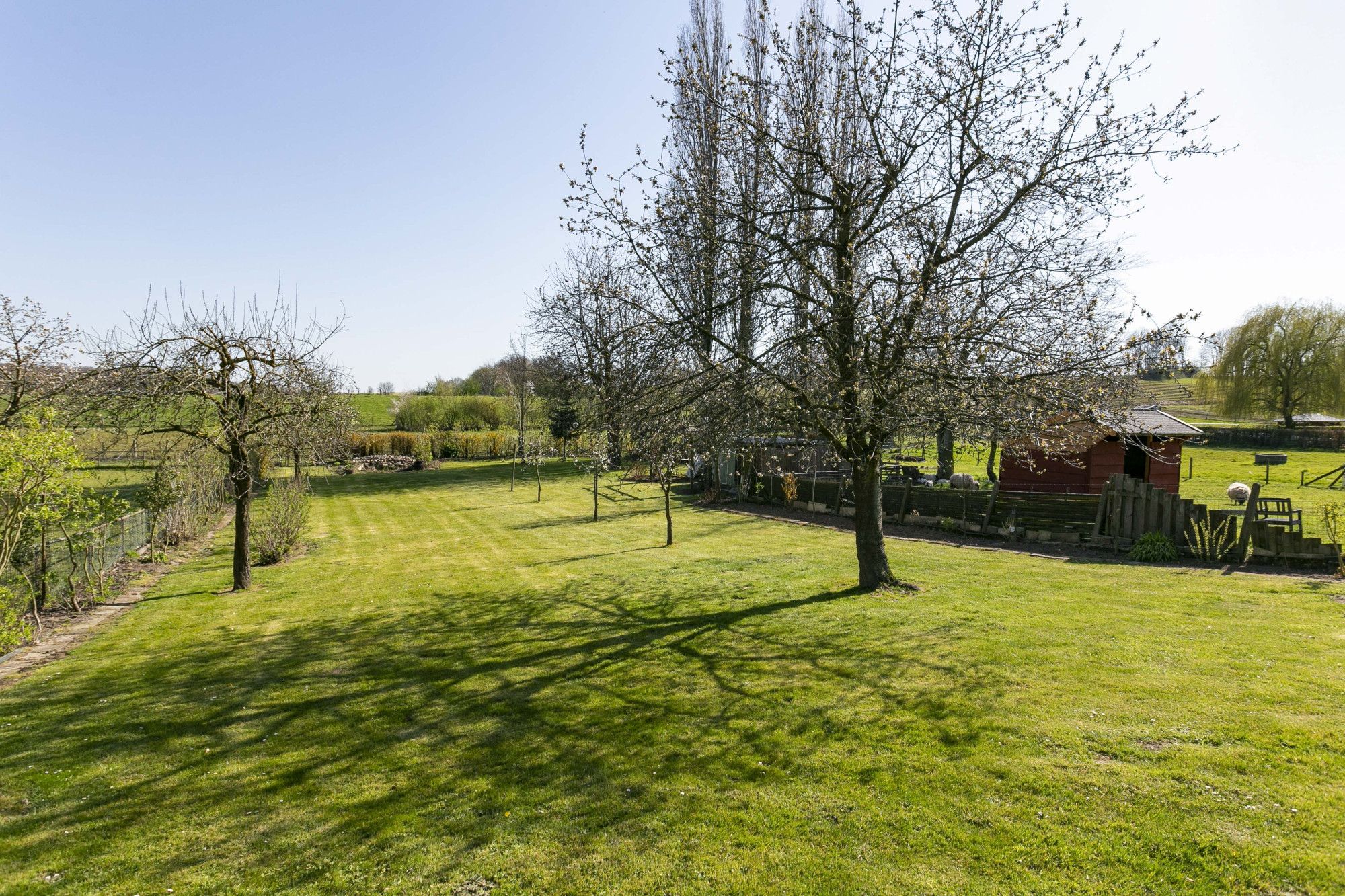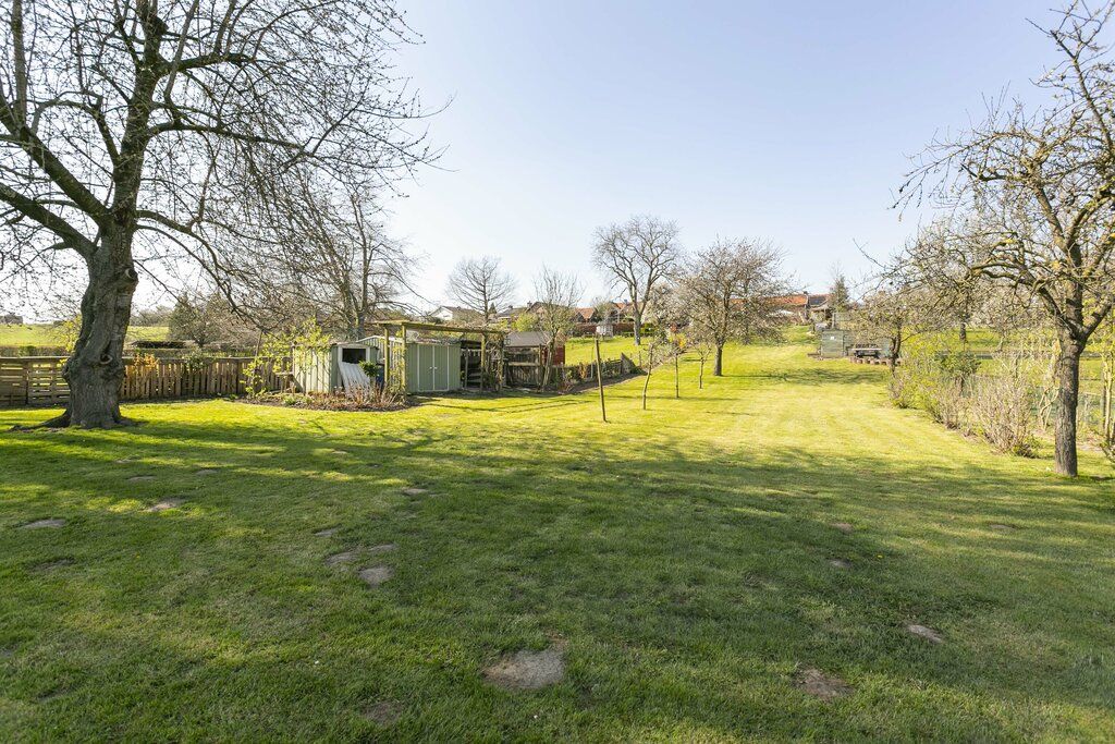 De omliggende huisweide, rijk aan fruitbomen zoals pruimen-, kersen- en appelbomen, vormt samen met de moestuin een idyllisch en landelijk geheel. Diverse separate bergingen bieden praktische opbergruimte.
