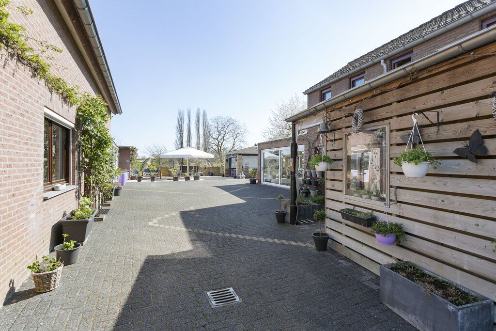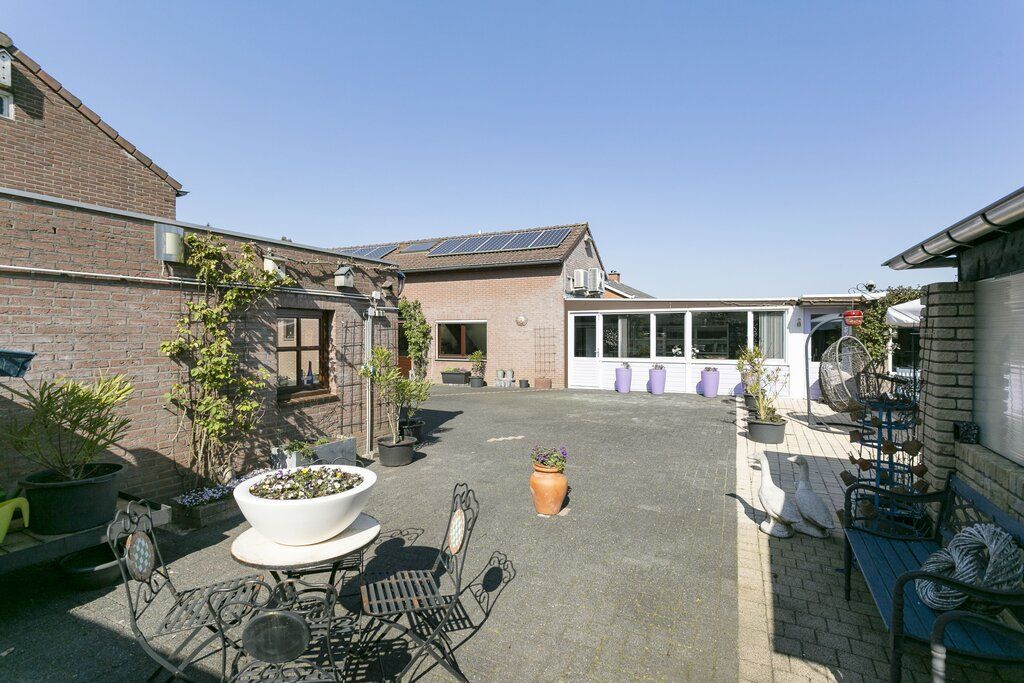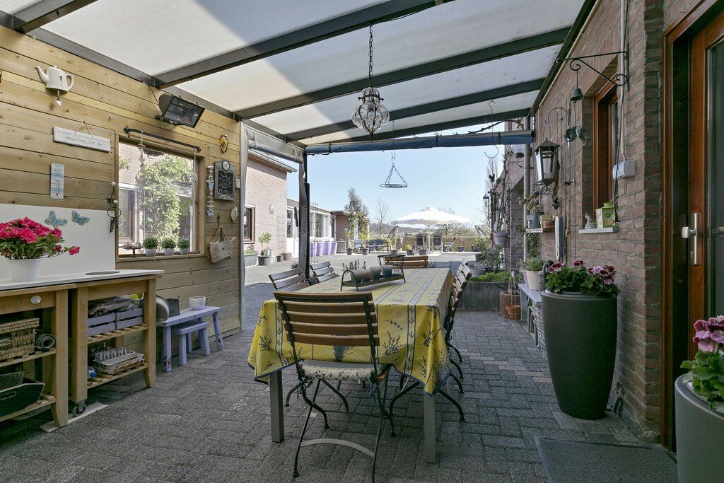 Stap binnen in een oase van rust en ruimte via de riante binnenplaats, waar een sfeervol overdekt terras u verwelkomt en naadloze toegang biedt tot het woonhuis, het appartement, tuinkamer en het kantoor.
