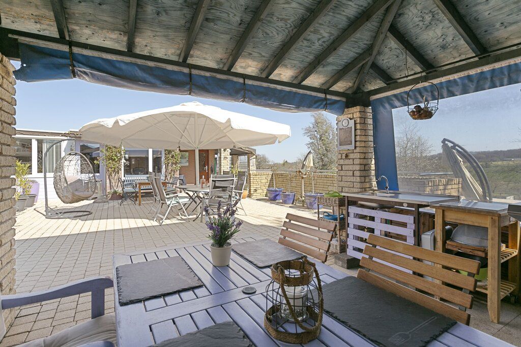 De onder architectuur aangelegde Provençaalse tuin ademt luxe en ontspanning. Hier geniet u van een royaal zwembad met stijlvolle vlonder, een volledig uitgeruste buitenkeuken en meerdere zonnige én overdekte terrassen – perfect voor lange zomeravonden en gezellige diners in de buitenlucht.