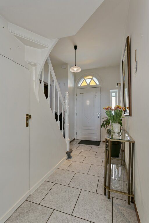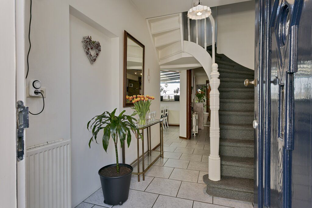 Representatieve hal met toegang tot de royale living, het eetgedeelte en de trap naar de verdieping.