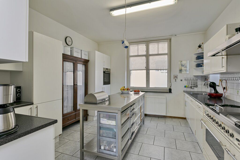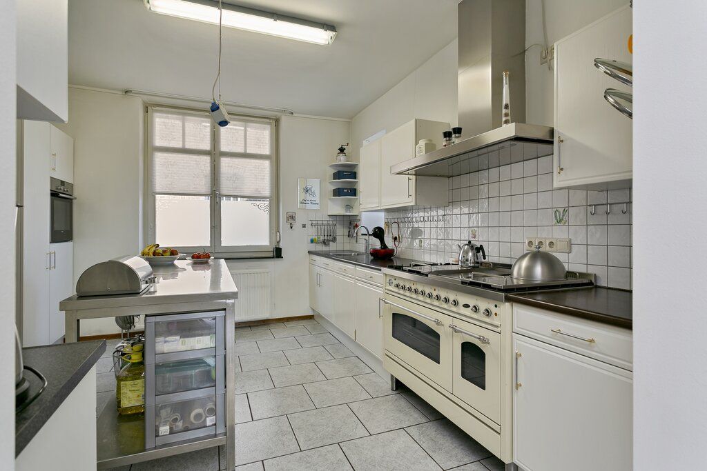 De keuken aan de voorzijde is volledig uitgerust met hoogwaardige apparatuur, waaronder een 6-pits Boretti gasfornuis met dubbele oven, afzuigkap, vaatwasser, combi-oven/magnetron en koelkast. De eetkamer staat in directe verbinding met het overdekte terras en de binnenplaats, waardoor binnen en buiten naadloos in elkaar overlopen.