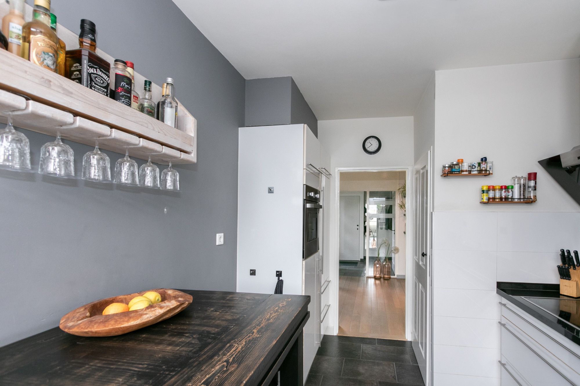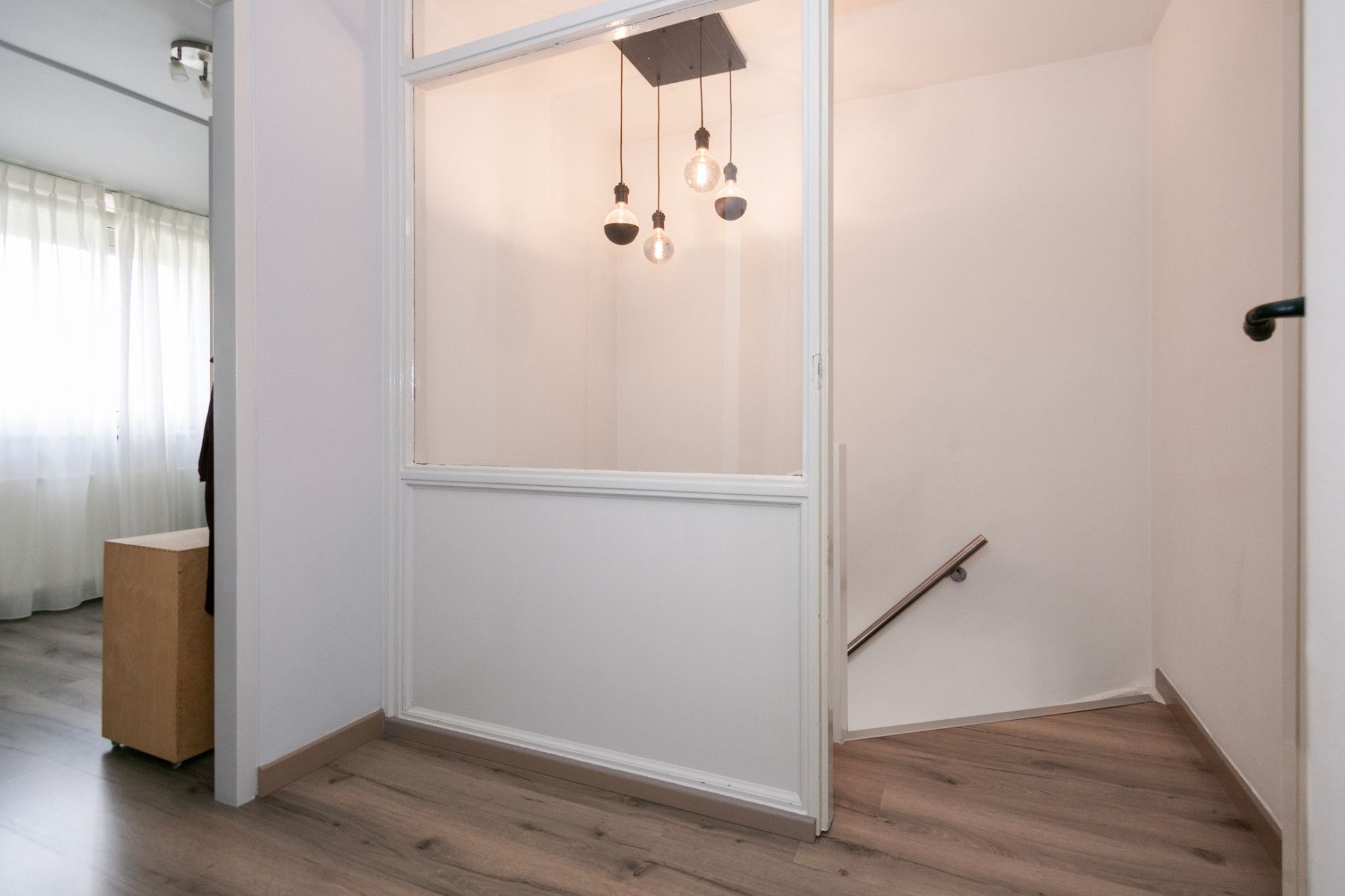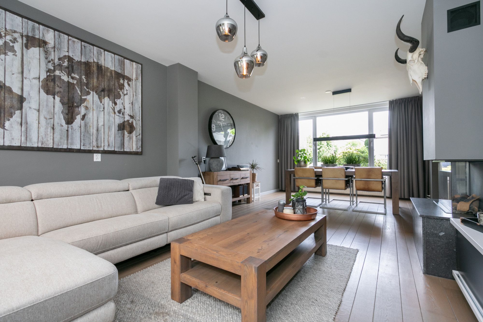 Bij binnenkomst in de woning word je begroet door de ruime woonkamer op de begane grond, die baadt in het natuurlijke licht dankzij de grote ramen. De gashaard en de onlangs gerenoveerde trap met verlichting geven de woonkamer extra sfeer.