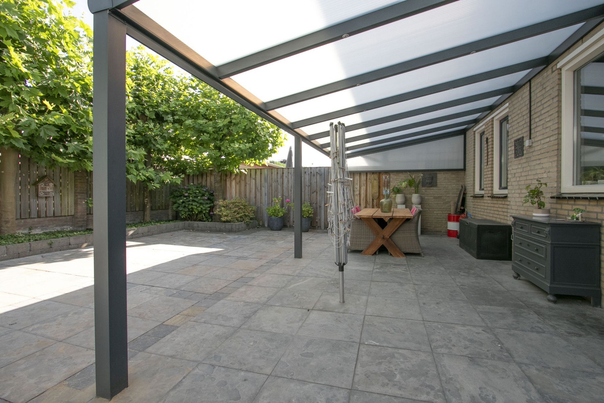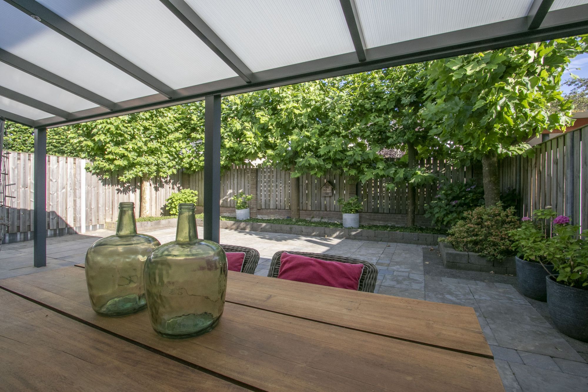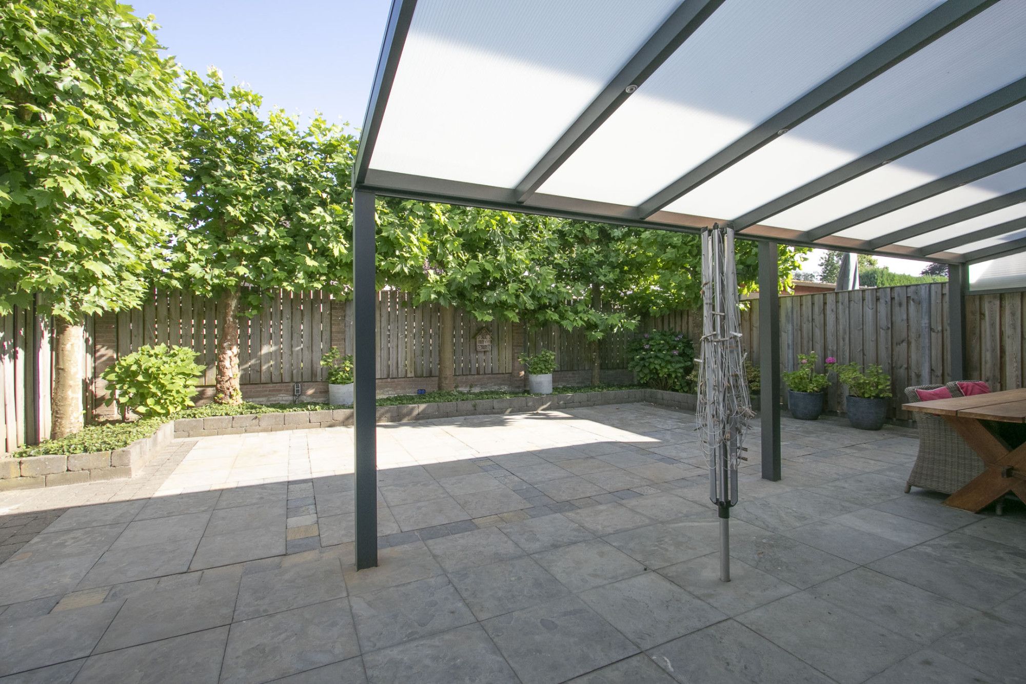De achtertuin van de woning is onderhoudsvriendelijk beklinkerd en heeft een mooie overkapping aan de achtergevel. Enkele bomen aan de achterkant zorgen voor privacy. De grote voortuin zorgt ervoor dat je heerlijk terug ligt vanaf de straat.