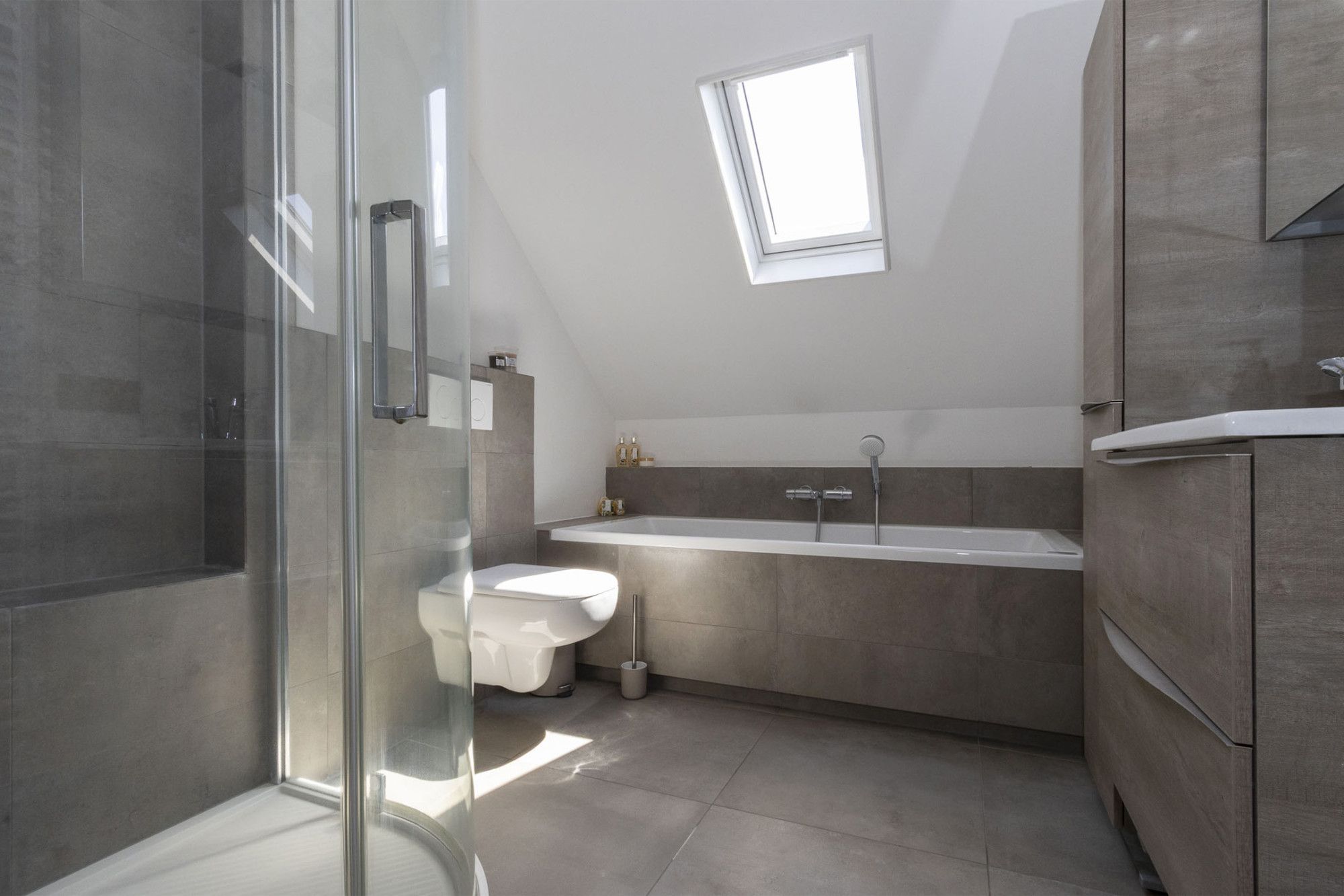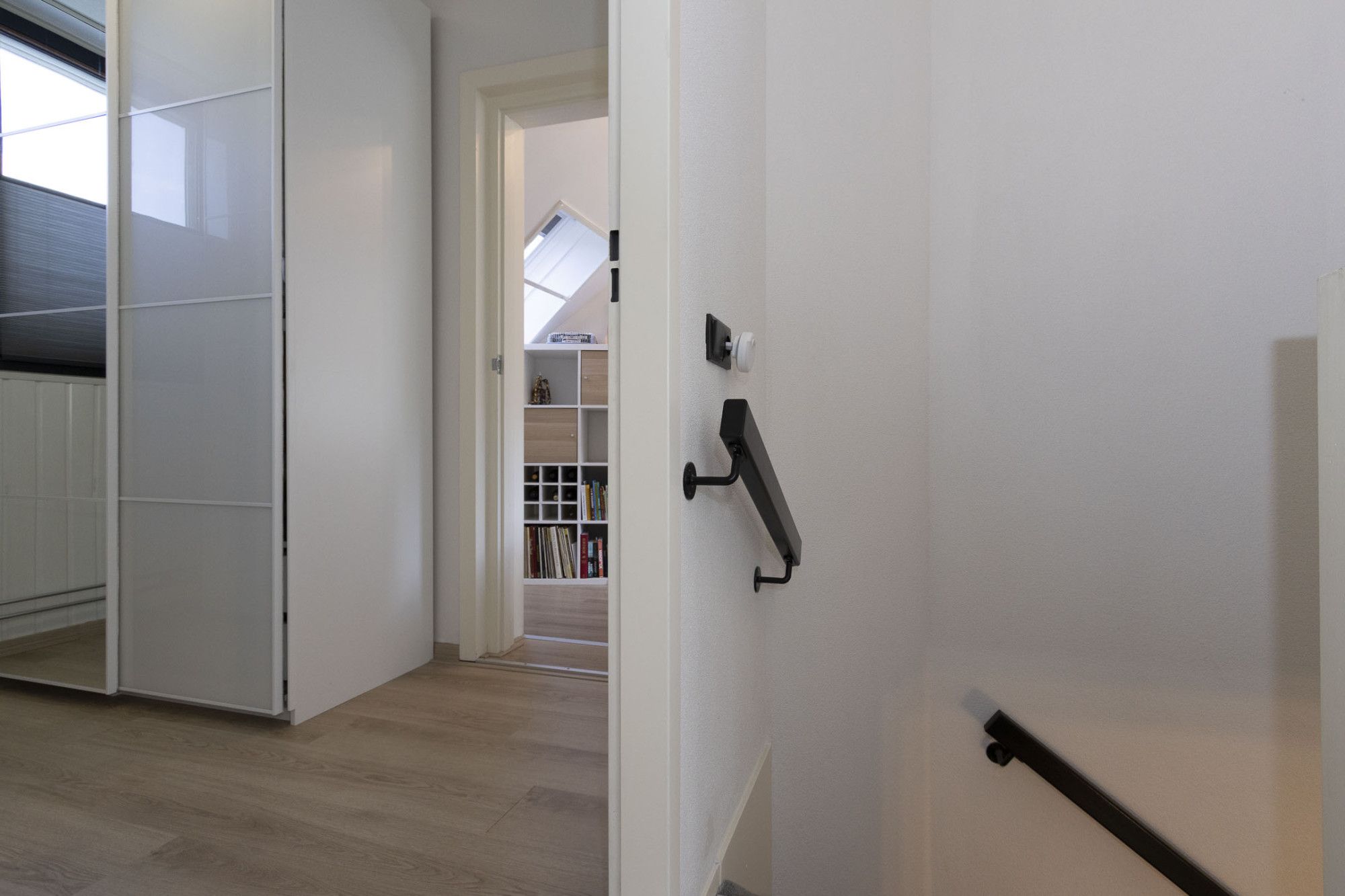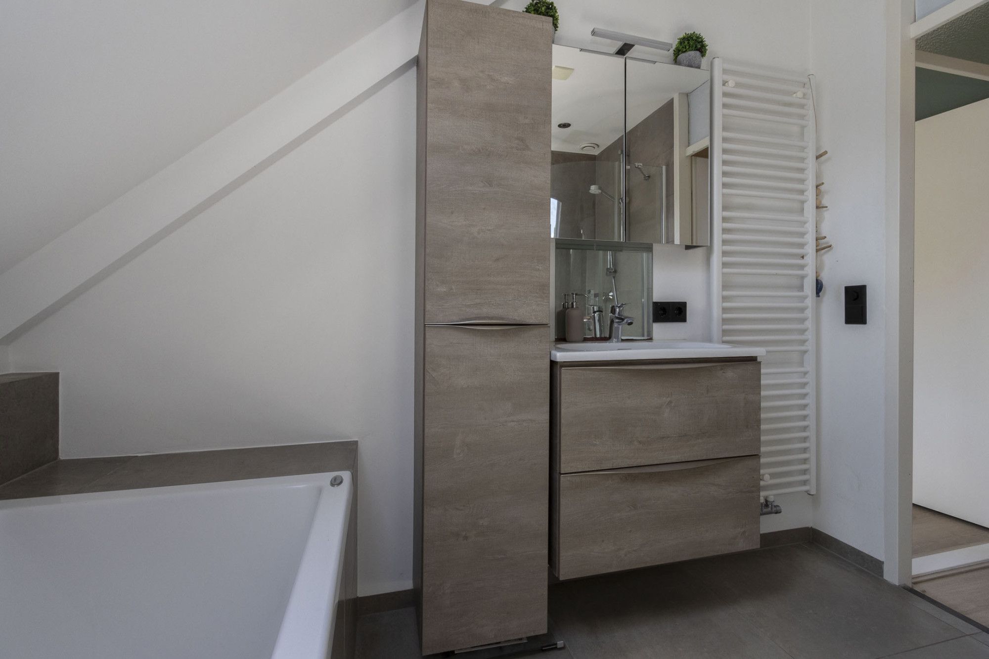 De bovenverdieping van deze woning telt maar liefst vier slaapkamers. De kamers aan de voorzijde hebben beide een groot dakkapel. De badkamer, met vloerverwarming, is modern en keurig betegeld en uitgerust met een ligbad, douchecabine, wandcloset en designradiator met wastafelmeubel. Daarnaast is er een praktische bergzolder die met een vlizotrap te bereiken is.