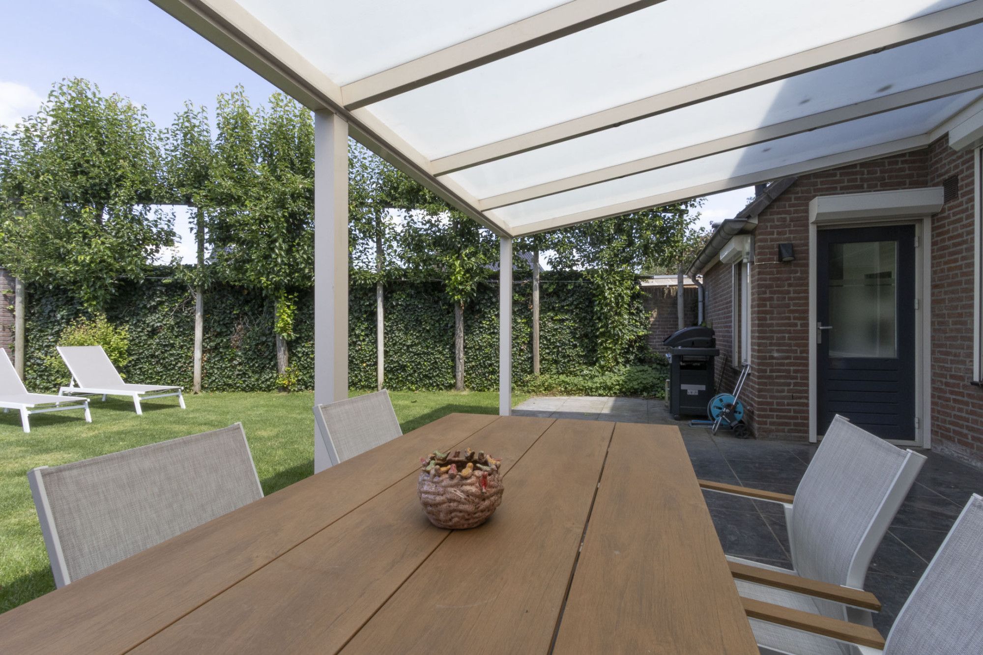 Aan de achtergevel heb je een mooie overkapping waar het heerlijk toeven is. En wil je in het zonnetje zitten, dan ga je naar het terras aan de achterzijde van de tuin. Het gazon en de beplanting rondom zorgen voor een heerlijke groene tuin met privacy. Parkeren kan onder de carport waar een laadpaal geïnstalleerd is, aan de praktijkzijde of bij de parkeervakken direct nabij.