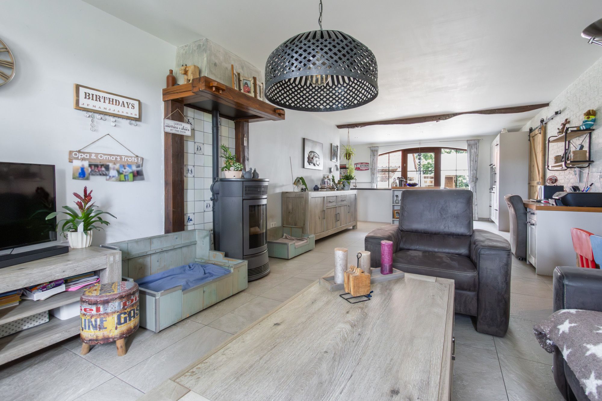 De woonkamer en keuken bevinden zich in een open ruimte. Er is voldoende ruimte voor een leuke zit en eethoek. De ruimte wordt extra verwarmd met een pellet kachel.