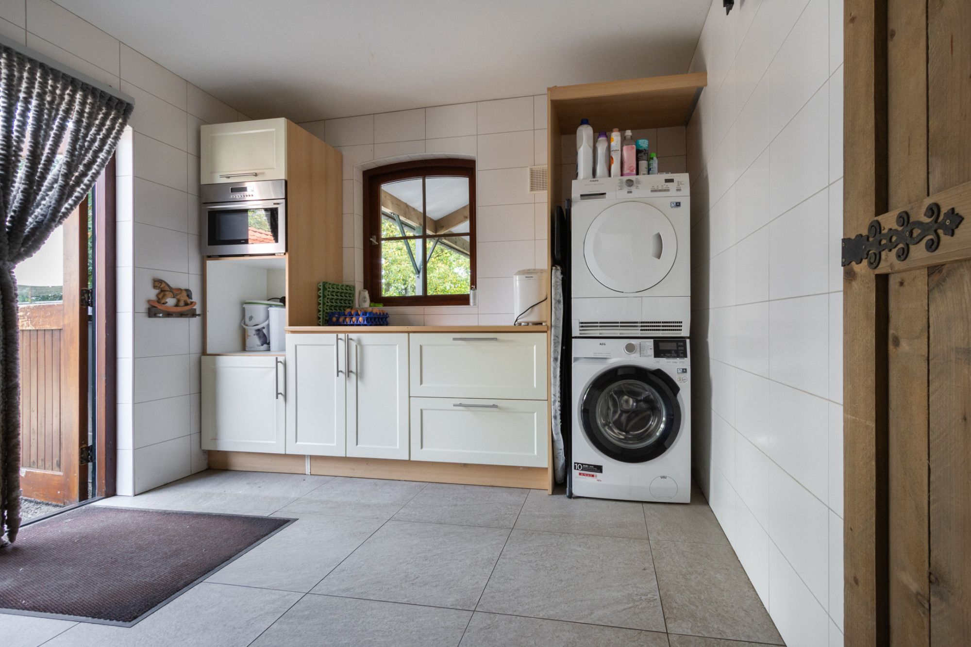 Direct naast de keuken bevindt zich de bijkeuken waar de witgoedaansluitingen zitten en een aparte bergruimte.