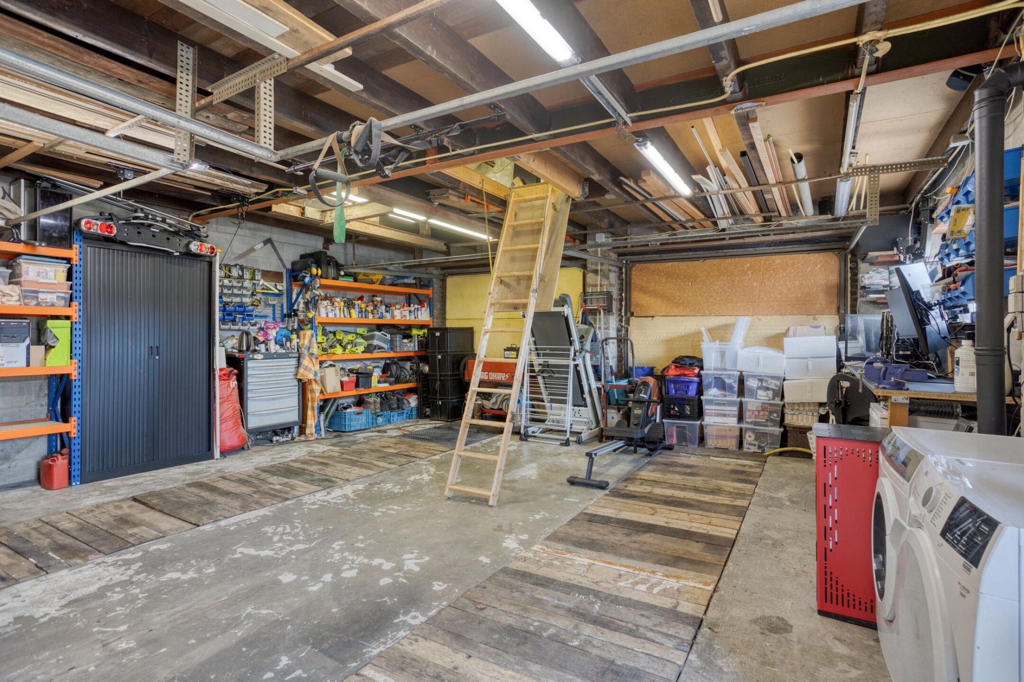 Zolder: via vlizotrap bereikbare geïsoleerde zolder. De garage beschikt over twee kantelpoorten en heeft een ruime berging op de vliering (15m2).
