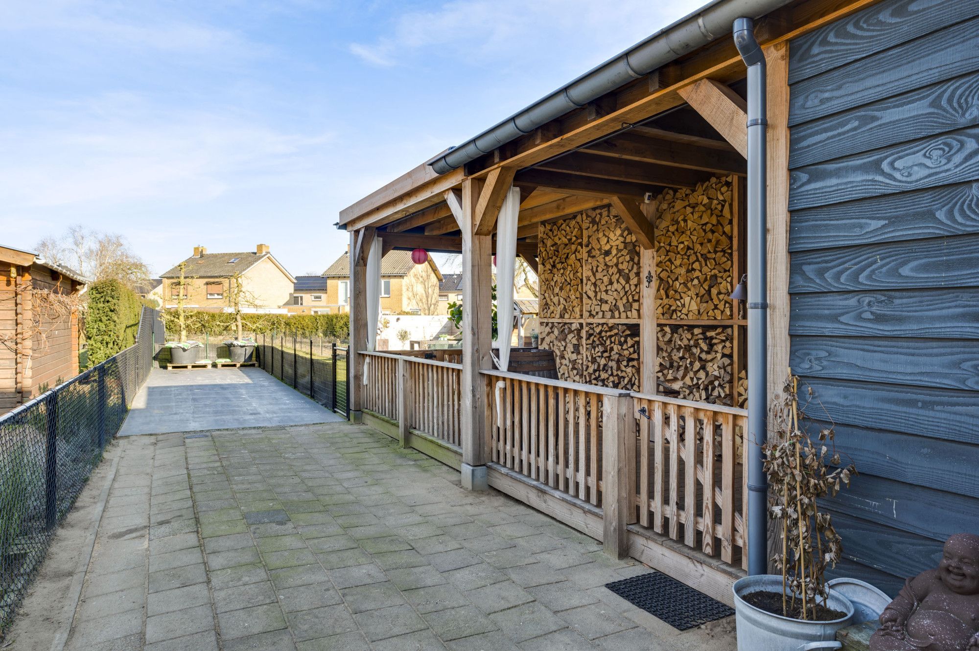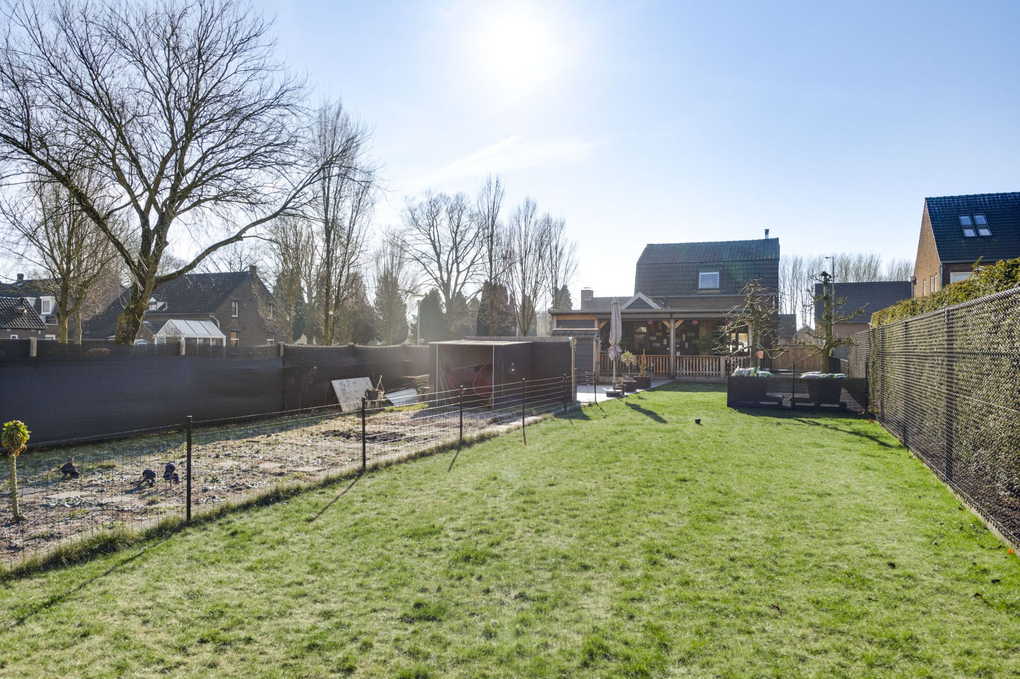 Aan de voorzijde van de woning is ruime parkeergelegenheid aanwezig op eigen terrein, dankzij de diepe oprit. Ook achter de poort is ruimte om auto's of een camper te parkeren. De achtertuin is via een vrije achterom bereikbaar en met veel zorg aangelegd. Hier vindt u een royale overkapping/veranda die het hele jaar door uitnodigt om buiten te genieten – of het nu gaat om een zomerse barbecue of een knusse avond met de houtkachel aan. Aangrenzend bevinden zich een praktische berging en een houtopslag. De tuin is verder ingericht met een gazon, sierbestrating, borders en een kippenren. Dankzij het royale perceel is er volop ruimte om de buitenruimte geheel naar eigen wens in te richten.