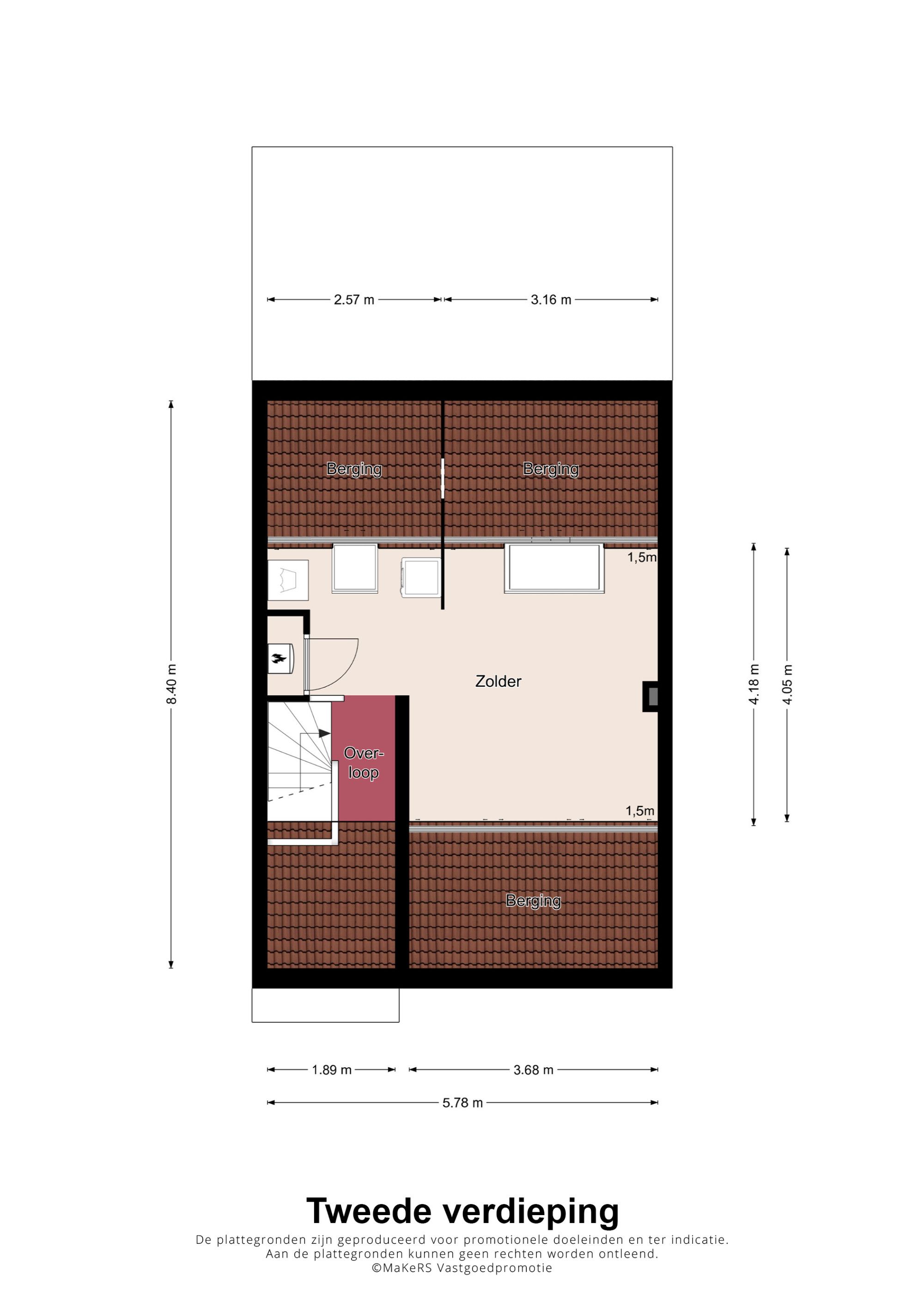 Via een vaste trap toegankelijk; overloop met toegang tot de zolder met veel bergruimte in de knieschotten, mogelijk 4e slaapkamer en de opstelling van de cv combi ketel (Nefit Proline HR, 2025, Huur Volta Limburg).