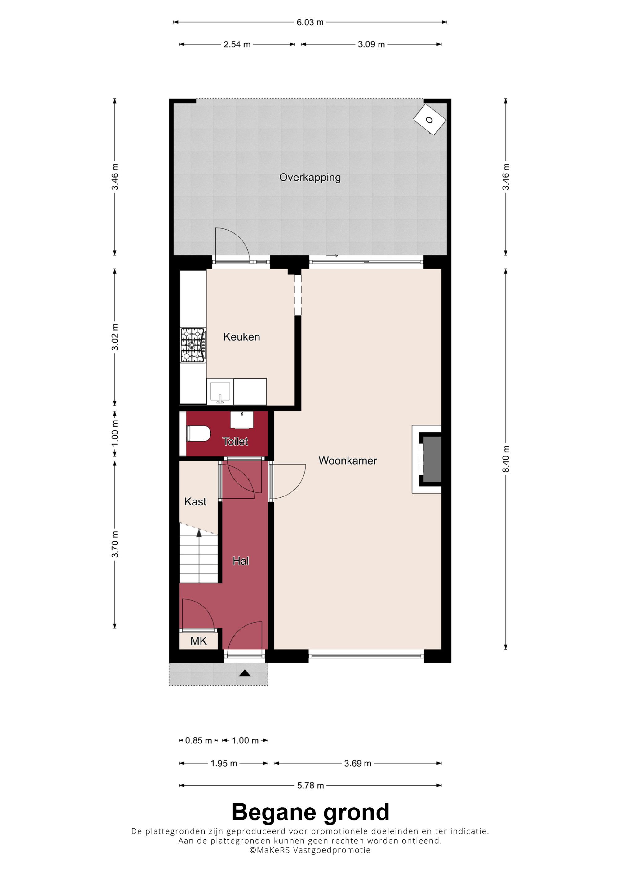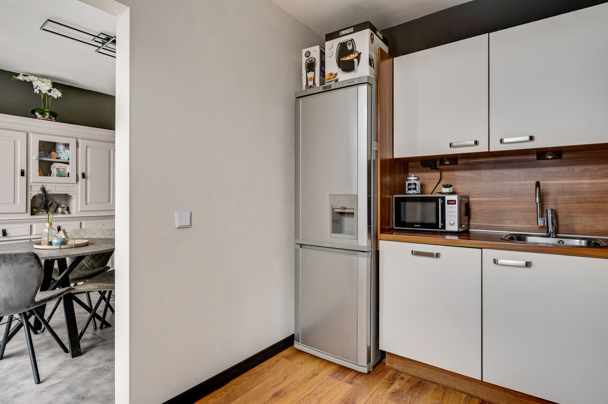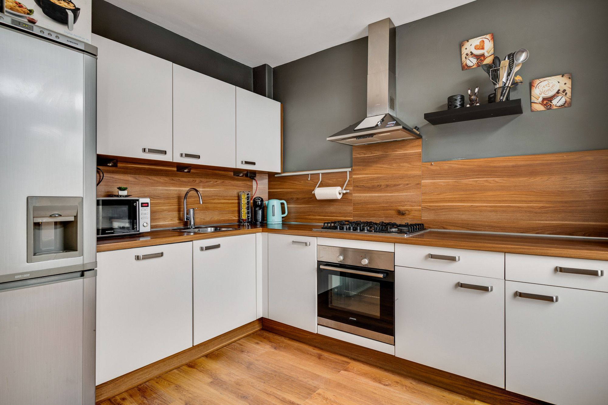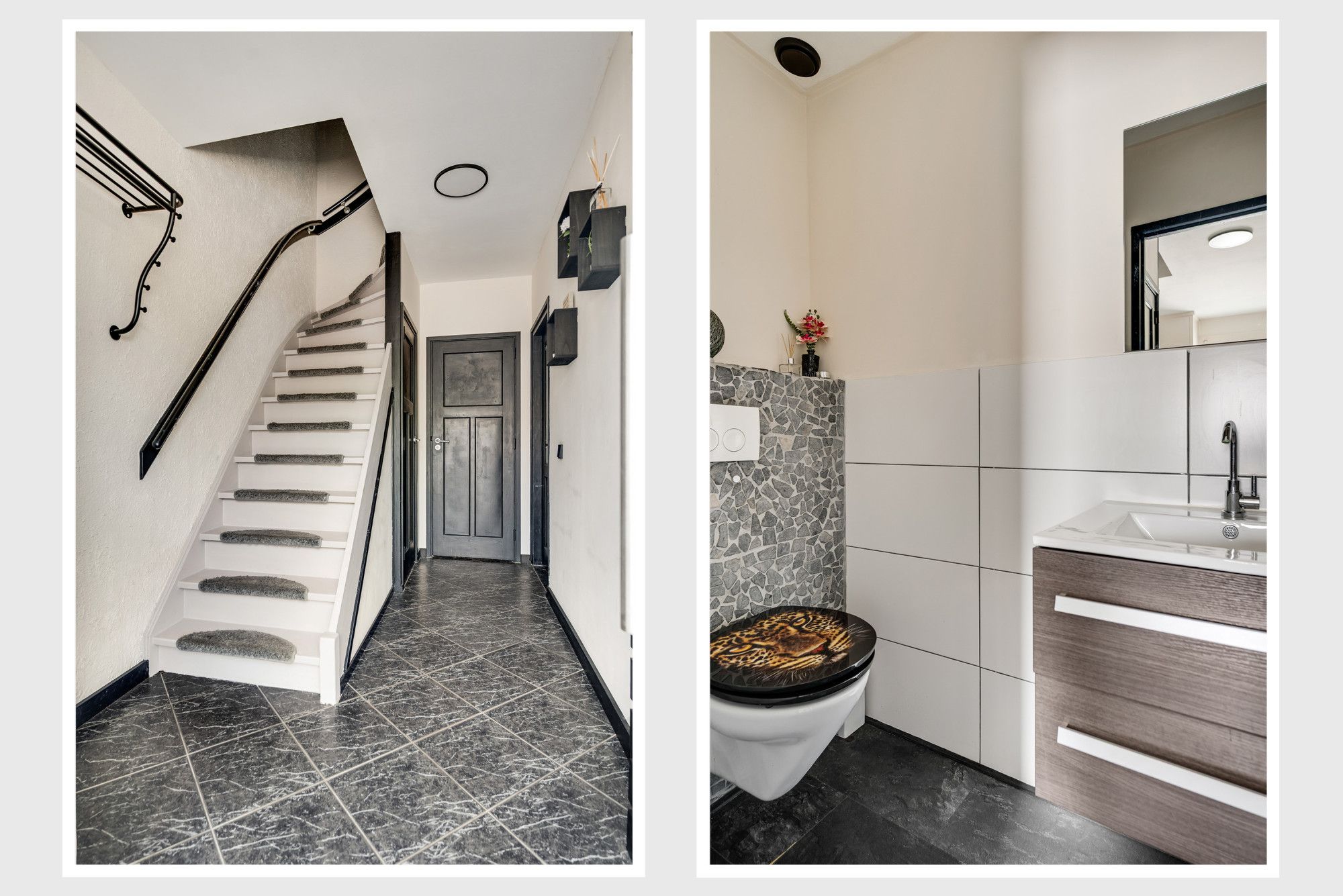 Hal/entree met de meterkast, de trapopgang naar de eerste verdieping, een praktische trapkast, de toiletruimte met zwevend toilet, fonteintje met meubel en toegang tot de woonkamer. De woonkamer is voorzien van een laminaatvloer en beschikt over grote raampartijen en aan de achterzijde een schuifpui wat zorgt voor veel lichtinval. De moderne keuken is biedt een combinatie in L-opstelling en beschikt over een gasfornuis, afzuigkap, oven en een vaatwasser. Middels een loopdeur is de grote overkapping en de tuin te bereiken.