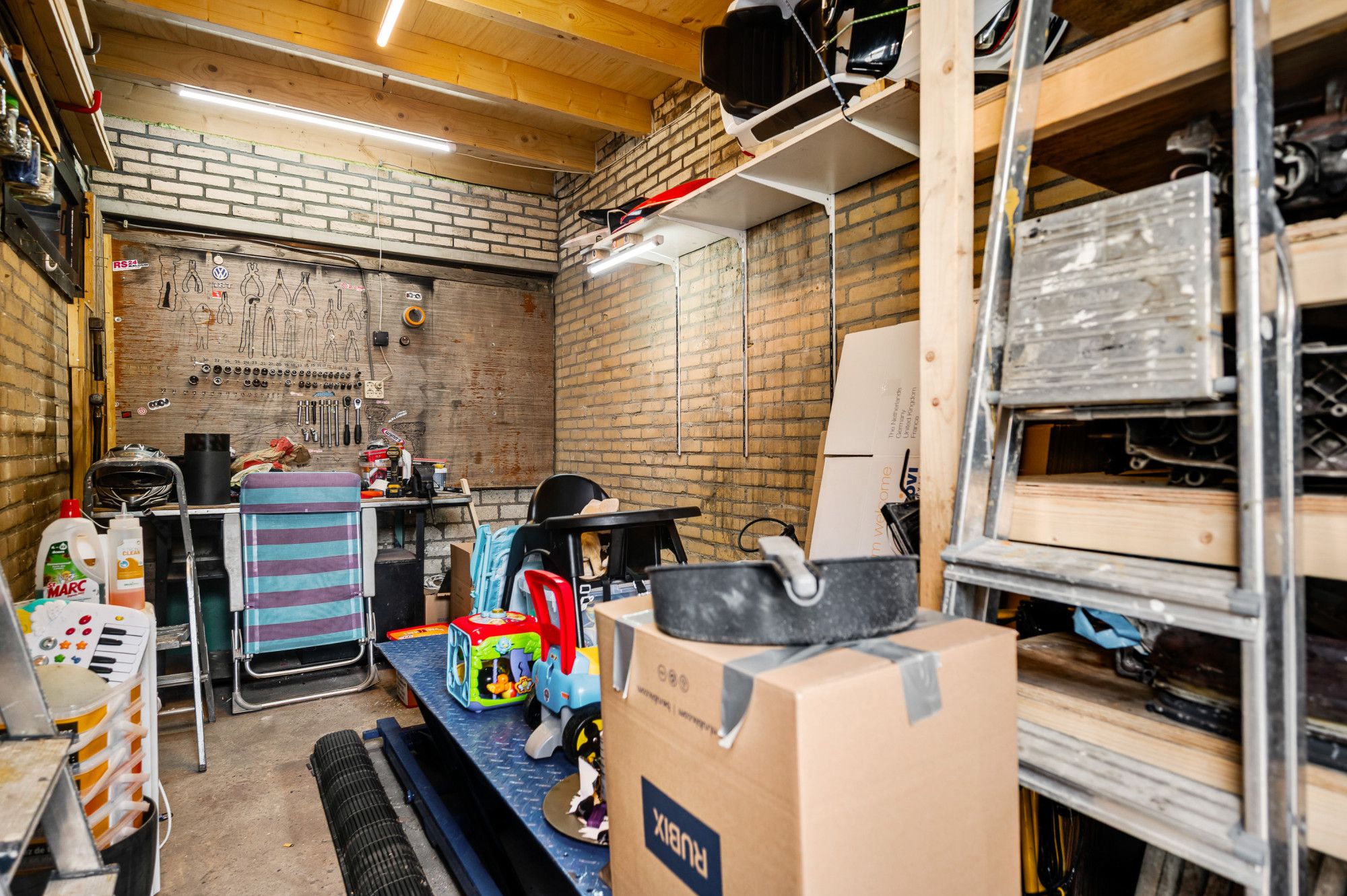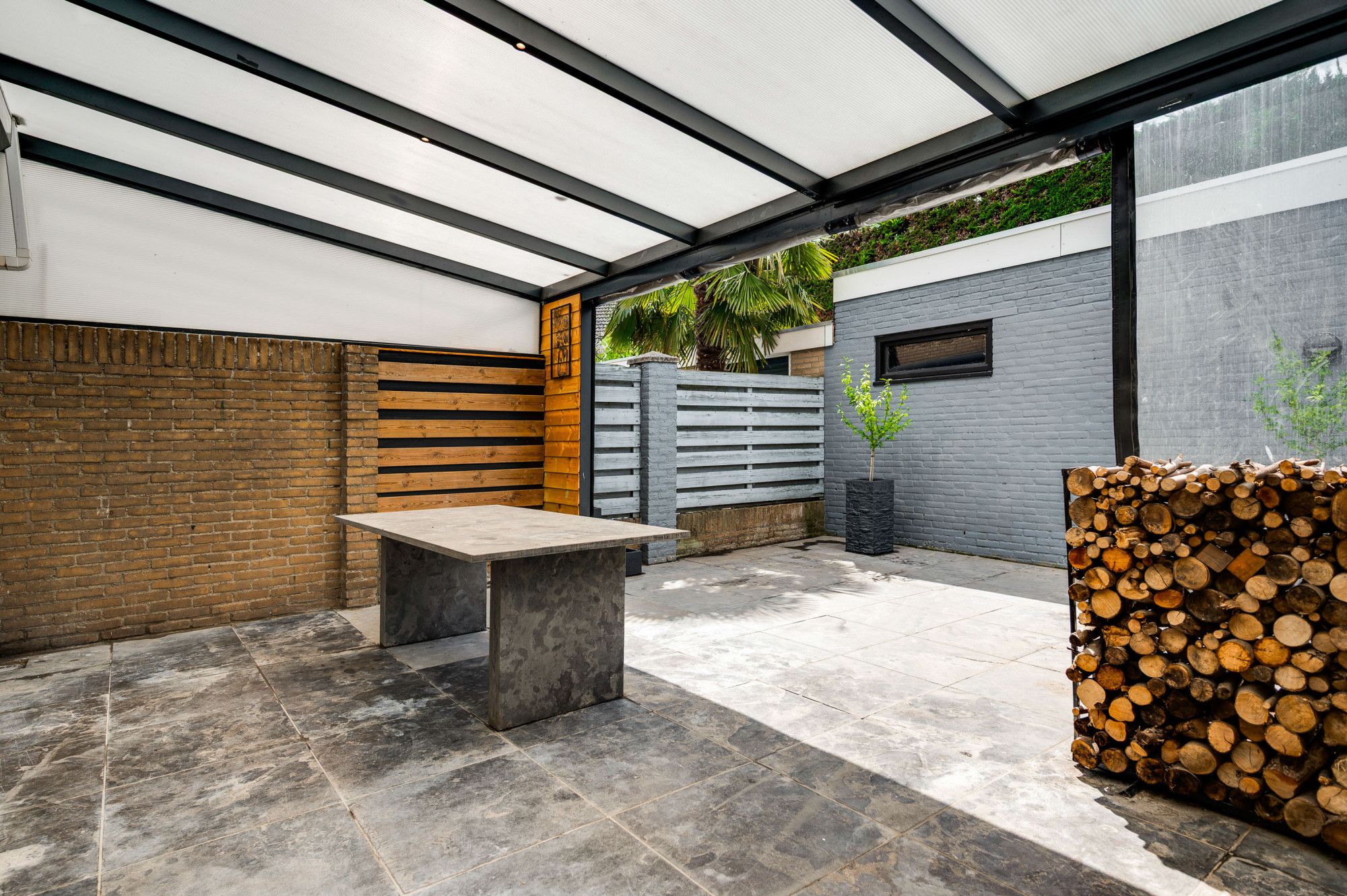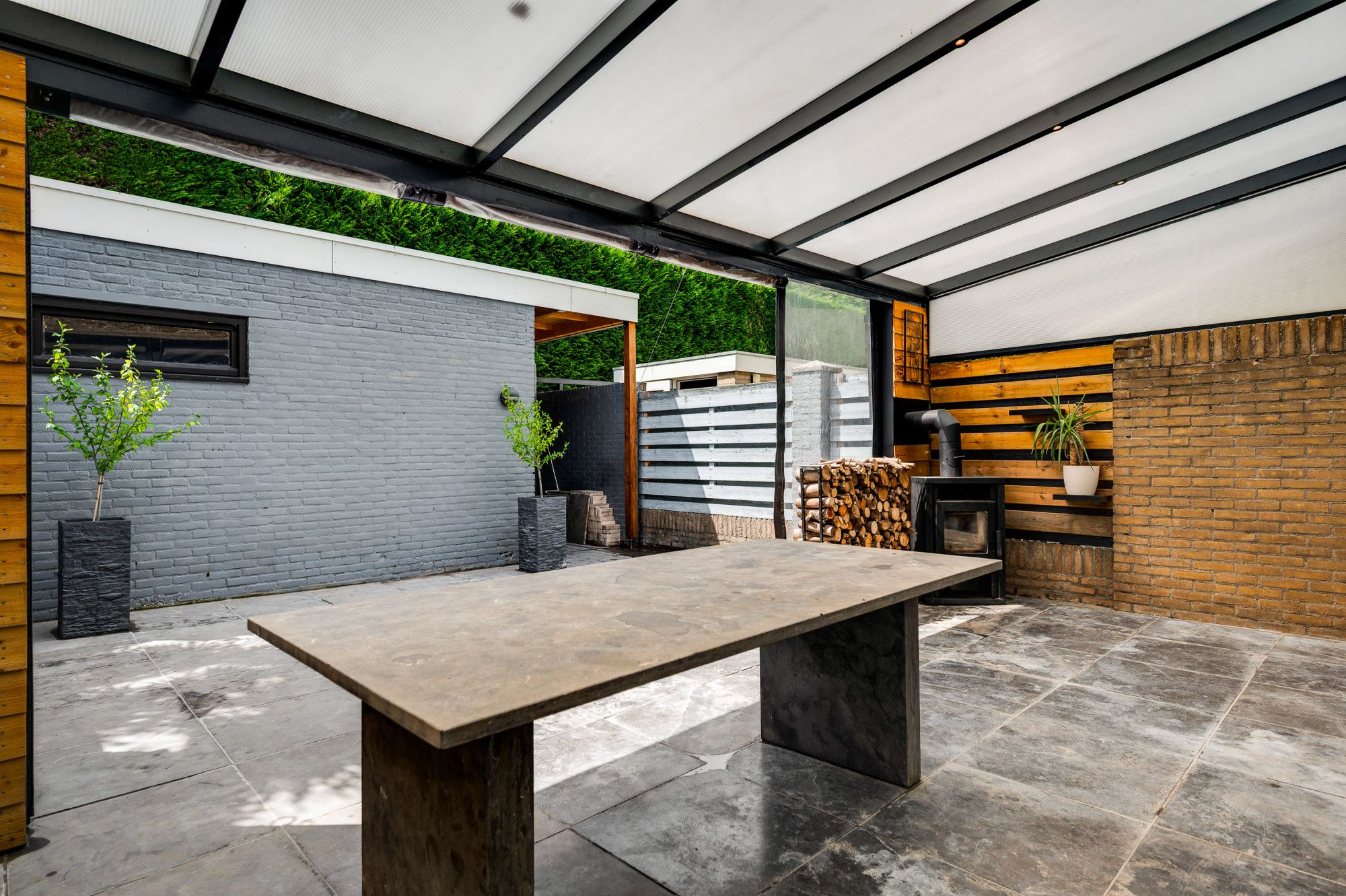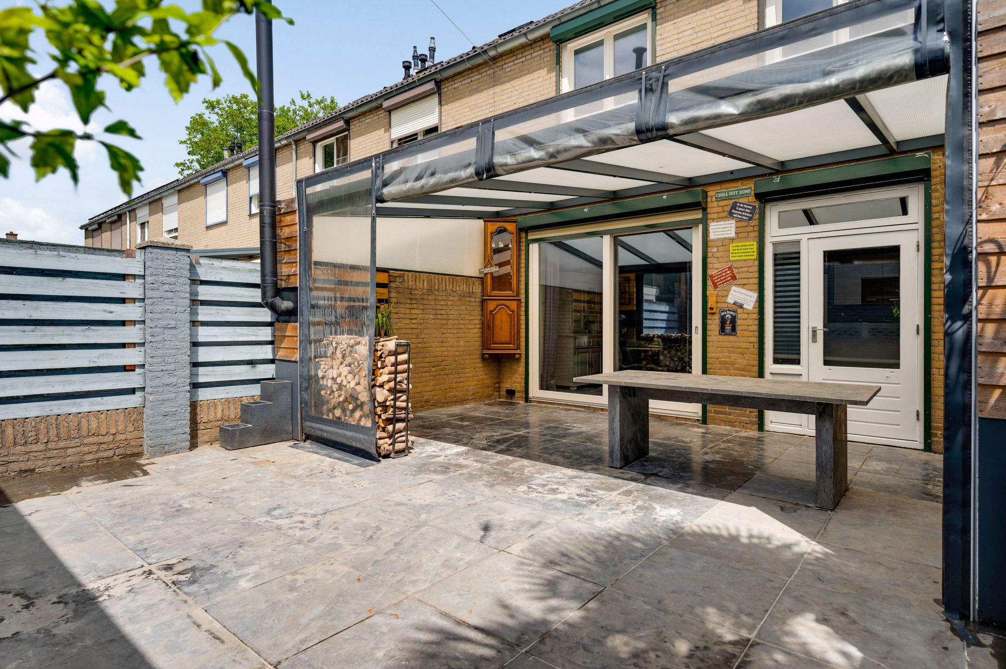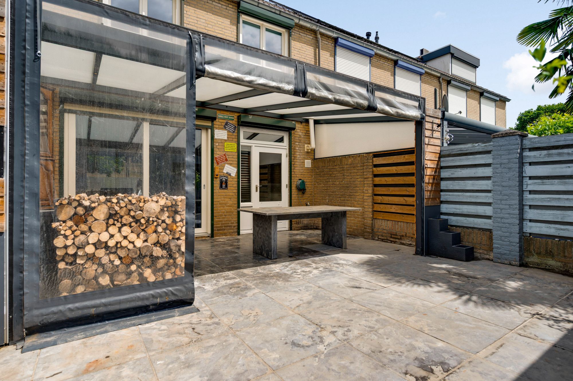 De onderhoudsvriendelijke achtertuin beschikt over een terrasoverkapping, een vrije achterom en een ruime stenen berging.
