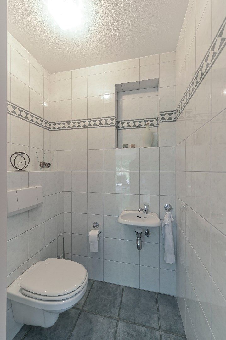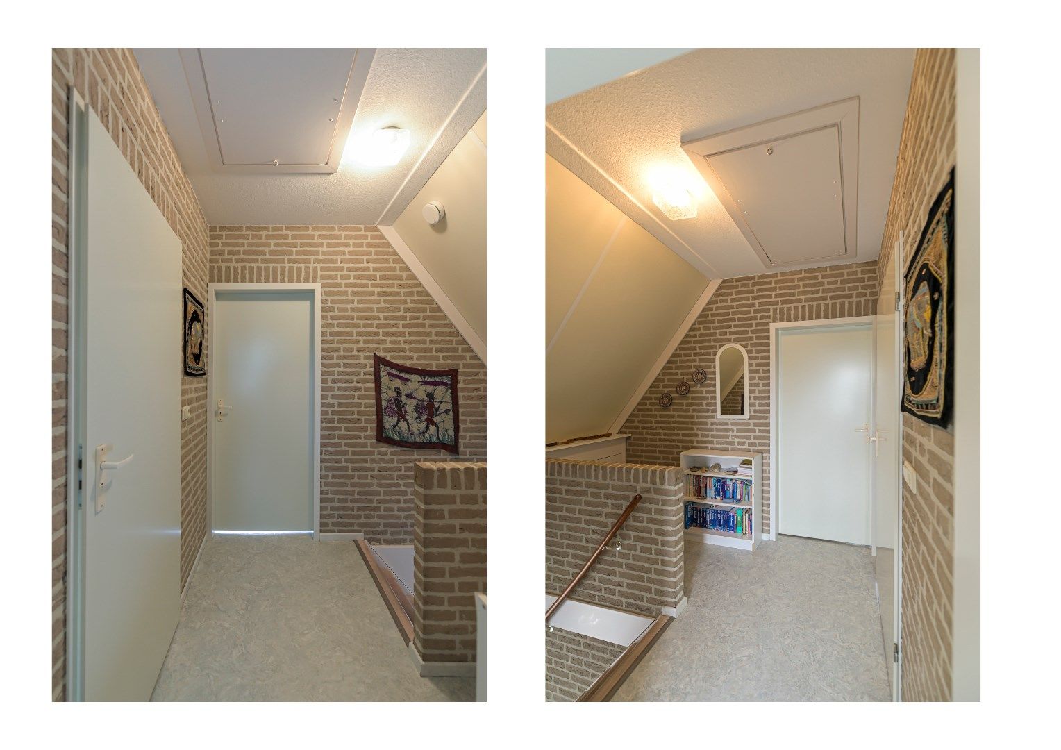 Eerste verdieping: Overloop. Twee slaapkamers beide met zeil op de vloer. Een slaapkamer is voorzien van een aangrenzende technische ruimte met C.V. installatie (HR Nefit combiketel uit 2021) De andere slaapkamer is voorzien van wastafel. De badkamer is uitgerust met ligbad, aparte douche, wastafel, 3de toilet en designradiator.
