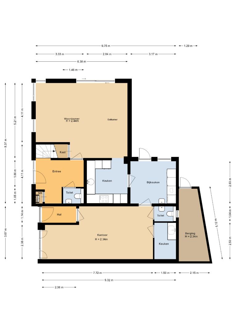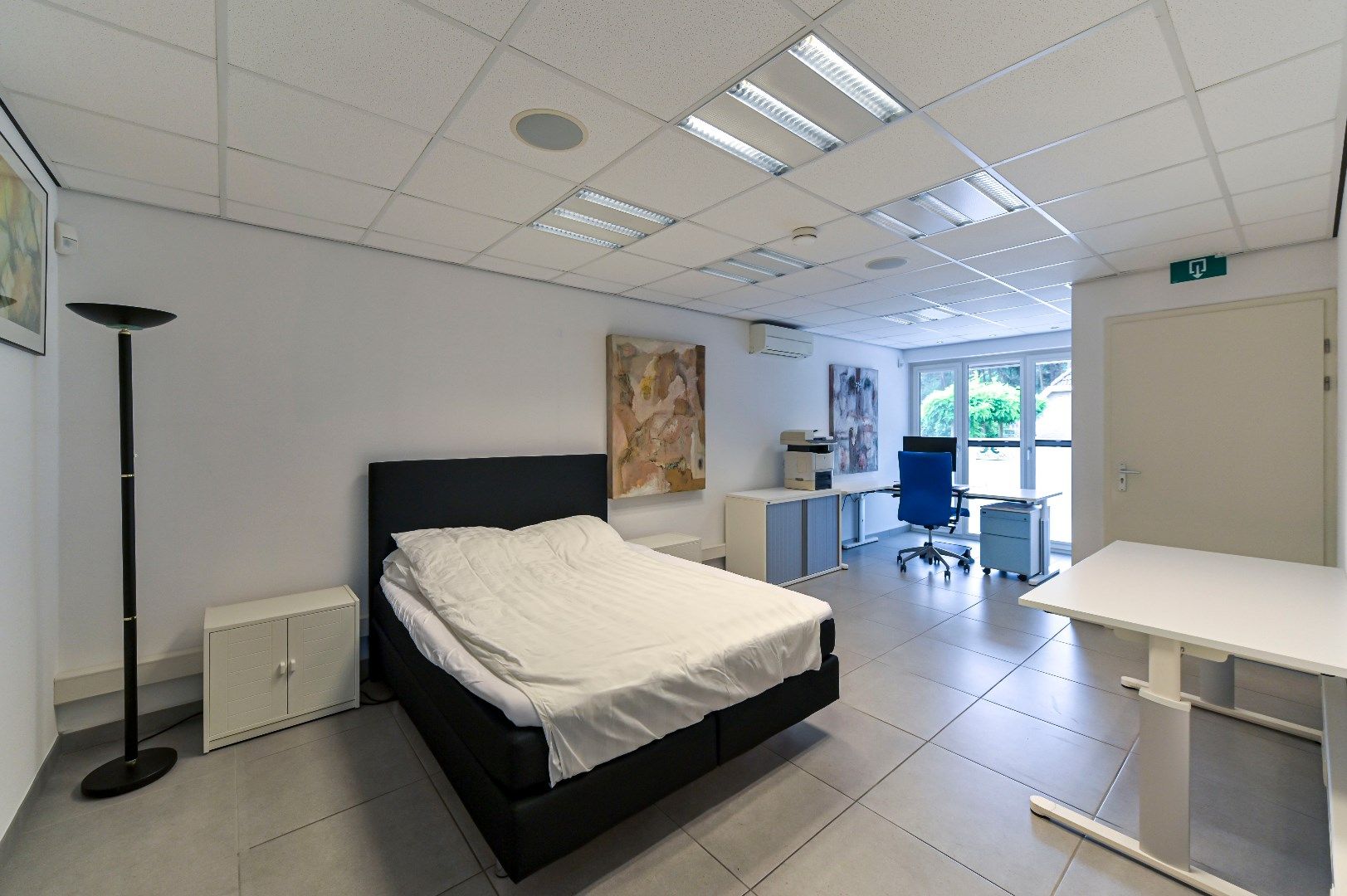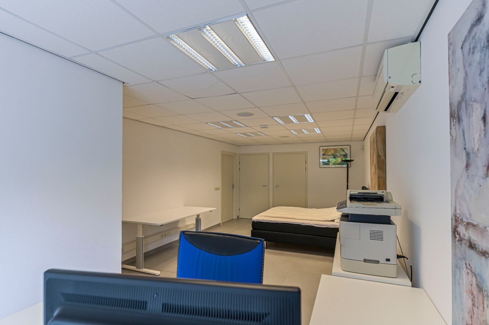 Op de begane grond bevindt zich de in 2008 gebouwde praktijkruimte/kantoorruimte met eigen ingang. Deze ruimte is voorzien van systeemplafond met inbouwarmaturen, airco, zwevend toilet met fonteintje en aparte ruimte met keukenopstelling. Deze ruimte kan eenvoudig verbouwd worden tot derde slaapkamer met aangrenzende badkamer.
