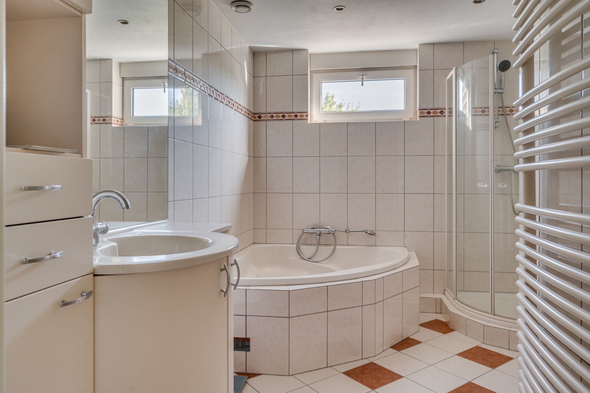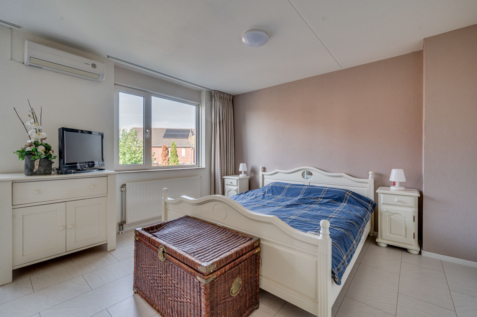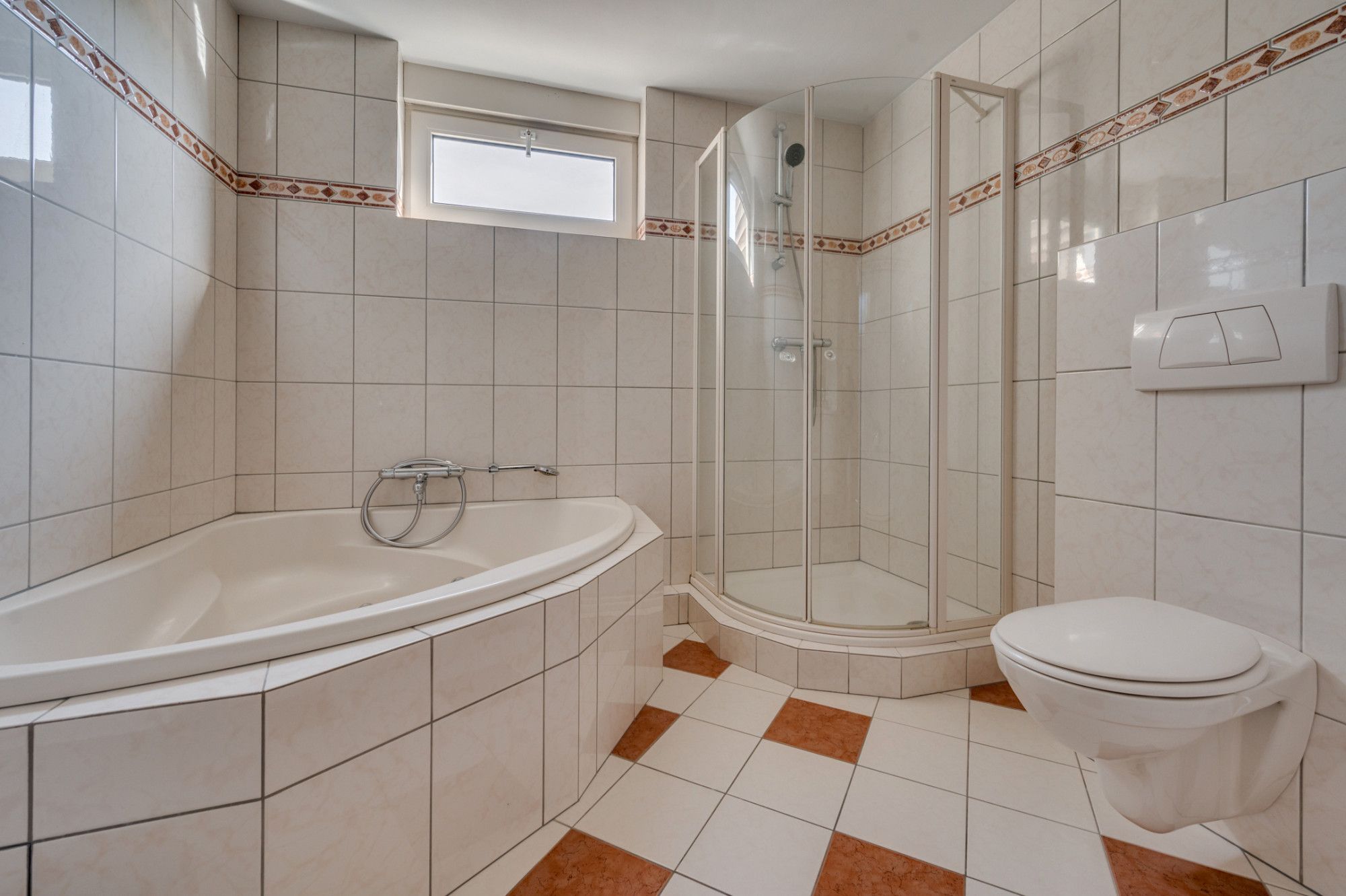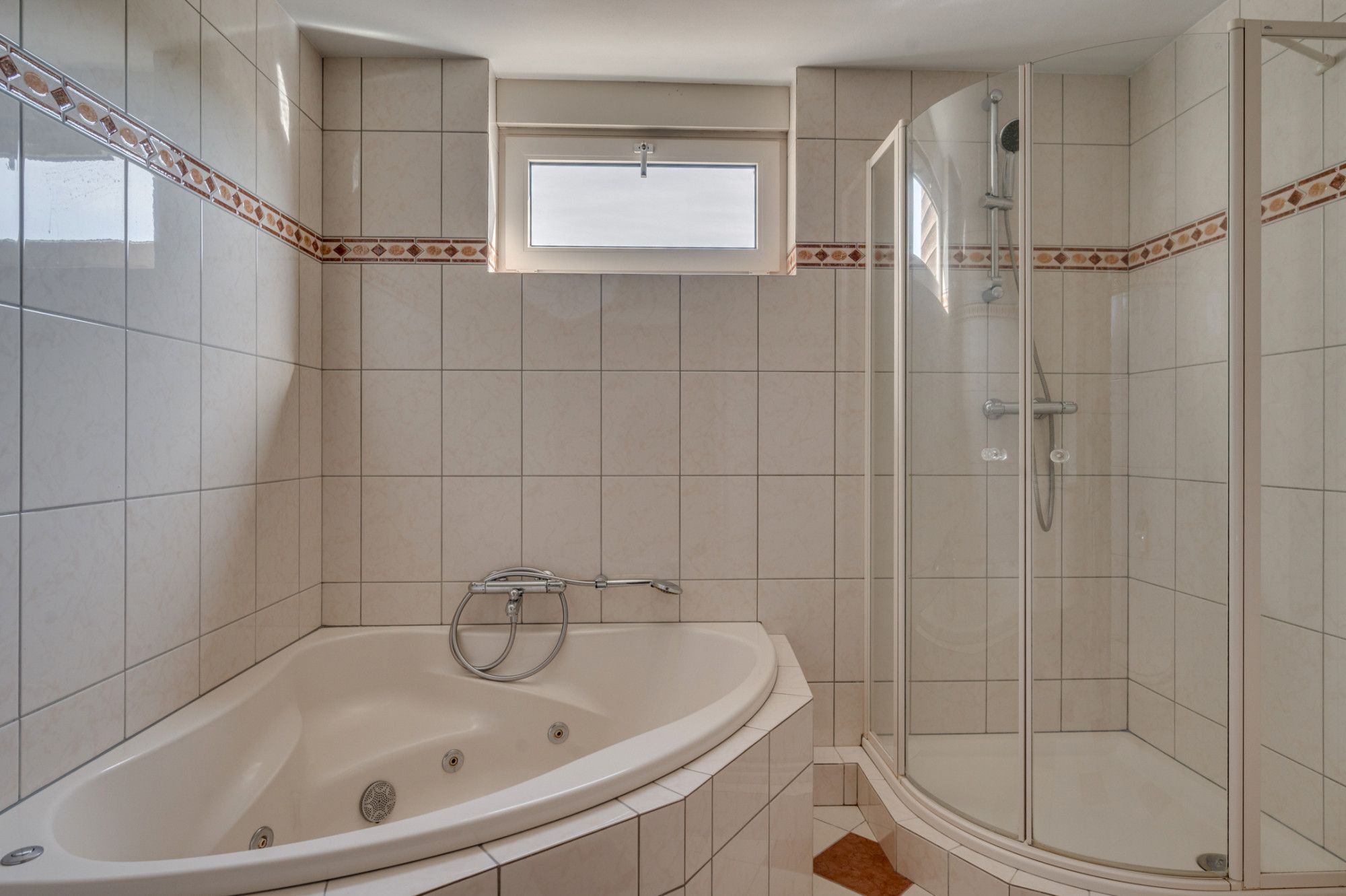 De ruime overloop geeft toegang tot 2 slaapkamers, badkamer, berging en trapopgang naar de 2e verdieping. De slaapkamers zijn ca. 19m² en 7,5m² groot. De badkamer beschikt over een ruim ligbad, douche, zwevend toilet, wastafel met meubel, mechanische ventilatie en buitenraam. De gehele verdieping is voorzien van een laminaatvloer en beschikt de master bedroom over een airco.