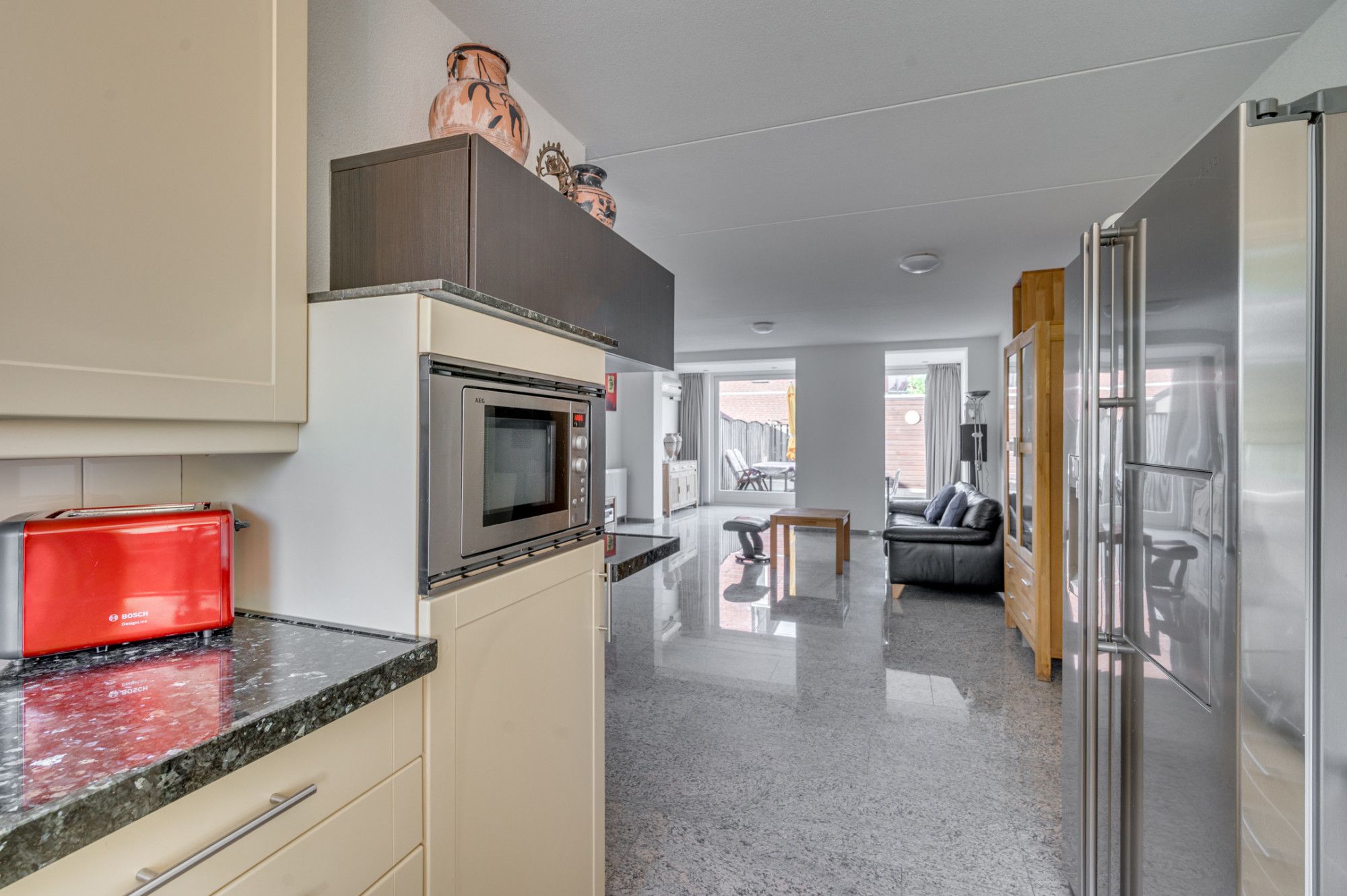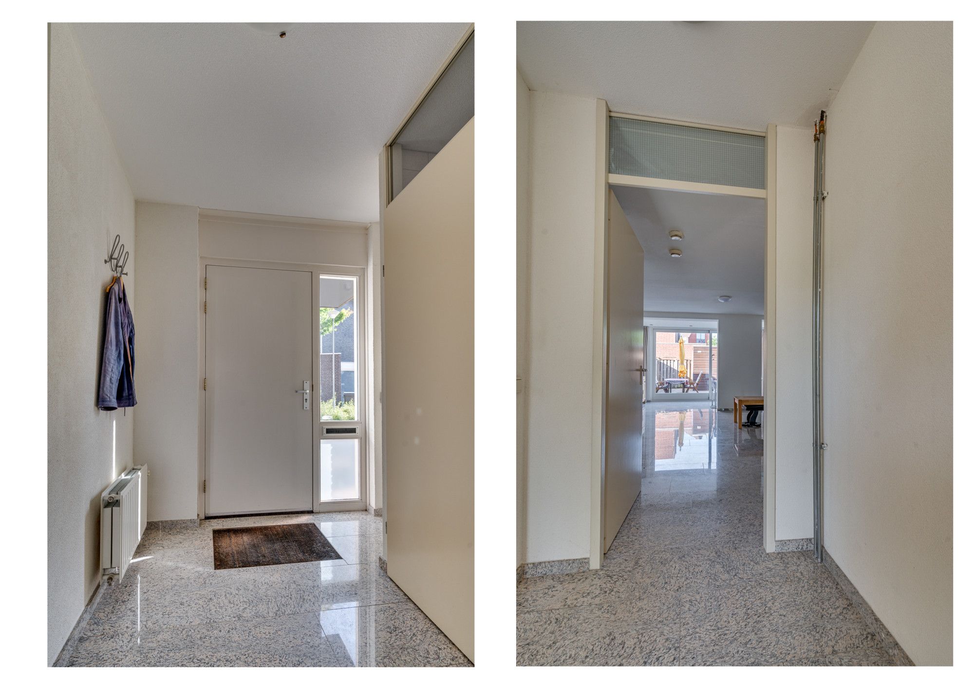 Middels de beklinkerde voortuin is de entree van de woning te bereiken. De ruime hal geeft toegang tot de meterkast, toiletruimte en de woonkamer. De geheel betegelde toiletruimte is voorzien van een zwevend toilet, fonteintje en mechanische ventilatie. De ruime woonkamer met aansluitend eetkamer welke in verbinding staat met de tuin is geheel voorzien van een tegelvloer. De woonkamer geniet veel lichtinval. Vanuit de eetkamer welke is voorzien van een airco (koelen en verwarmen) is het mogelijk om middels een schuifpui de tuin te betreden. De open keuken beschikt over een granieten aanrechtblad, elektrische kookplaat, afzuigkap, spoelbak, oven, magnetron en vaatwasmachine.