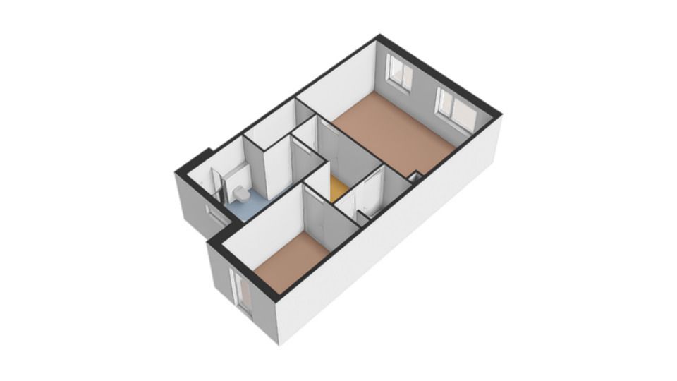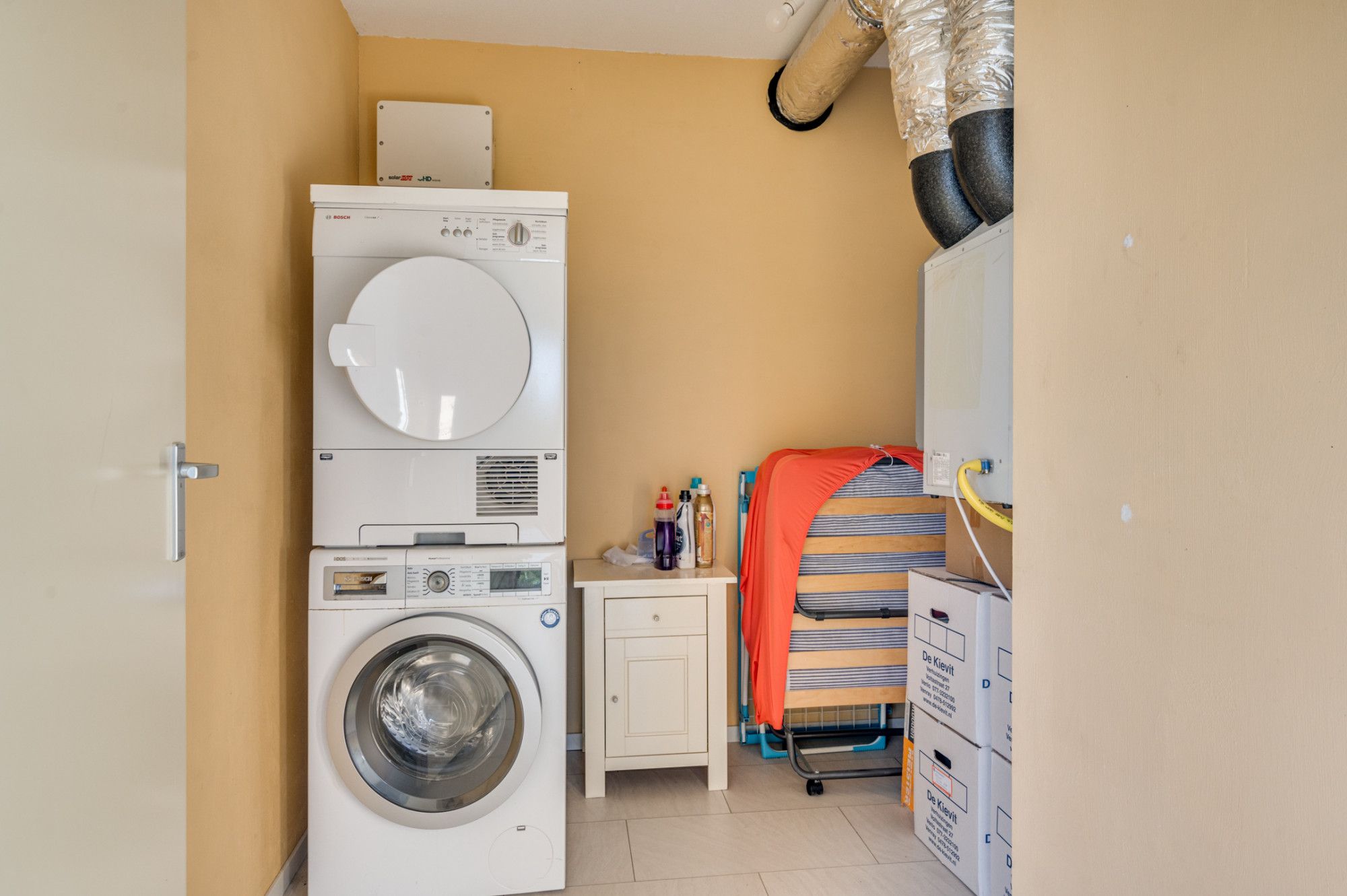Middels de vaste trap is er toegang tot de verdieping. Middels de overloop is er toegang tot de wasruimte, slaapkamer en het dakterras. De 3e slaapkamer is ca. 8m² groot. De wasruimte is verder voorzien van de witgoedaansluitingen, CV-ketel en de mechanische ventilatie. Het ruime dakterras is ca. 11m² groot.