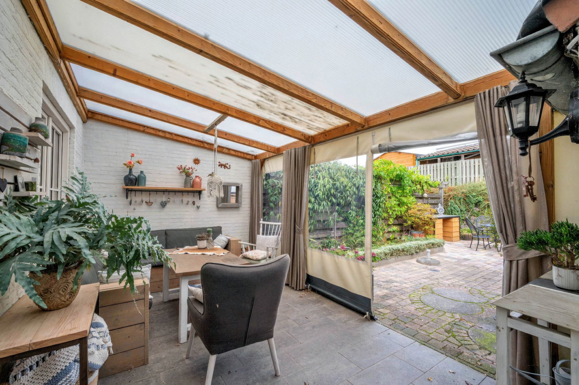 De voortuin is voorzien van groen en deels beklinkerd. Een looppad geeft toegang tot de entree. De achtertuin is onderhoudsvriendelijk ingericht, grotendeels beklinkerd en voorzien van borders met beplanting. Verder zijn er 2 stenen buitenbergingen, is er een ruime overkapping en is er veel privacy in de tuin.