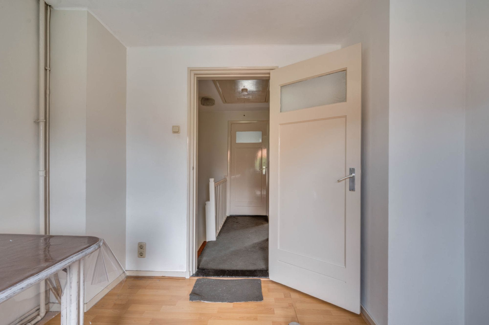 De overloop geeft toegang tot 3 slaapkamers, de badkamer en vlizotrap naar de zolder. Alle 3 de slaapkamers zijn voorzien van rolluiken en een laminaatvloer. De badkamer is functioneel ingericht met een douche, wastafel met meubel en buitenraam. De badkamer is geheel betegeld en voorzien van een buitenraam.