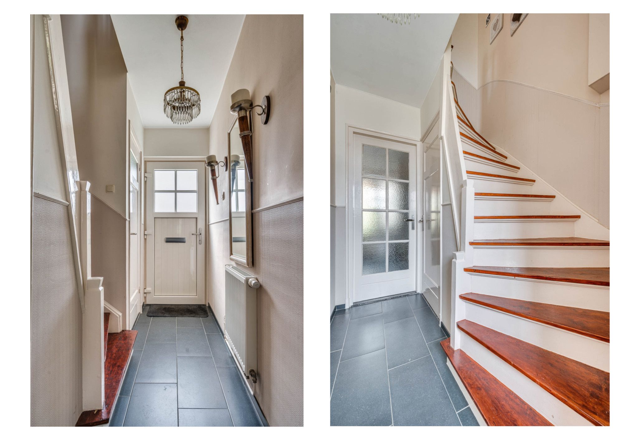 Middels een beklinkerd looppad is de entree van de woning te bereiken. De hal geeft toegang tot de toiletruimte, trapopgang naar de verdieping, trapopgang naar de kelder en loopdeur naar de keuken.