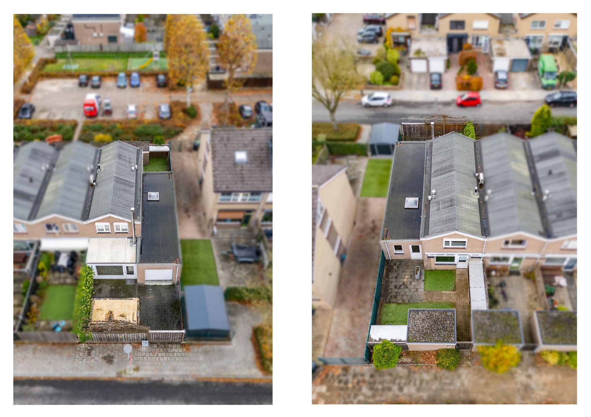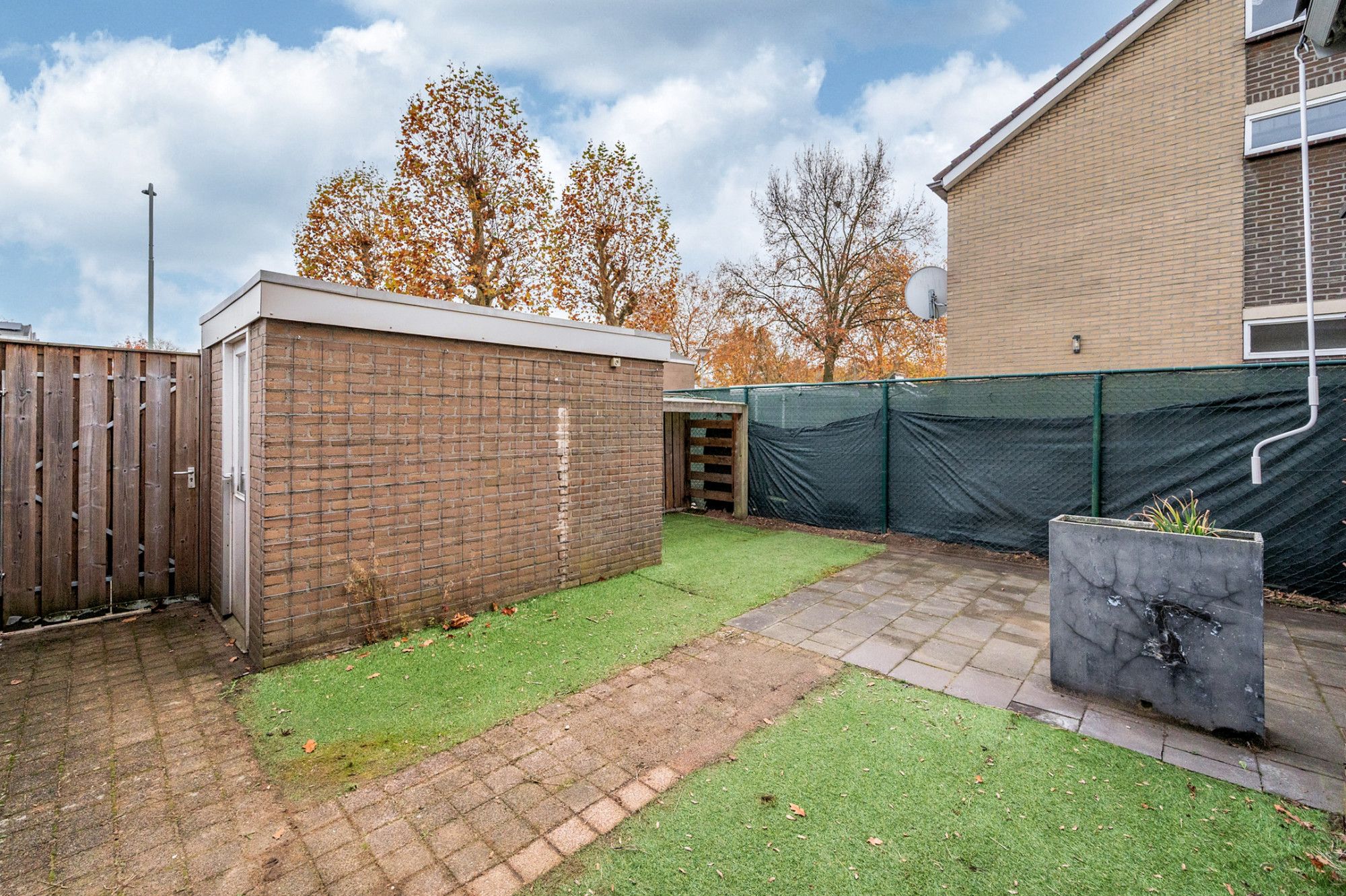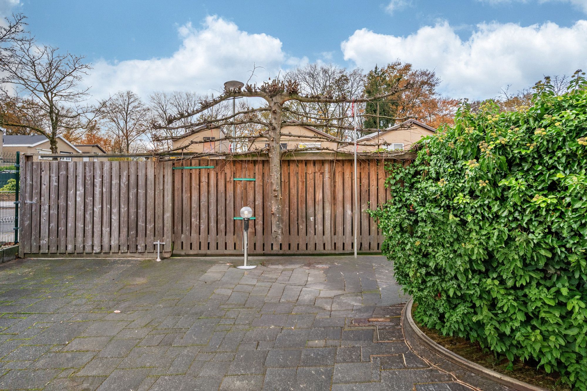De voortuin is geheel betegeld en voorzien van een gemetselde berging. De achtertuin is op het Oosten gelegen en biedt zeer veel privacy. De achtertuin is deels voorzien van een beklinkerd terras en grotendeels voorzien van een kunstgras. Tevens beschikt de achtertuin ook over een handmatig te bedienen zonnescherm.