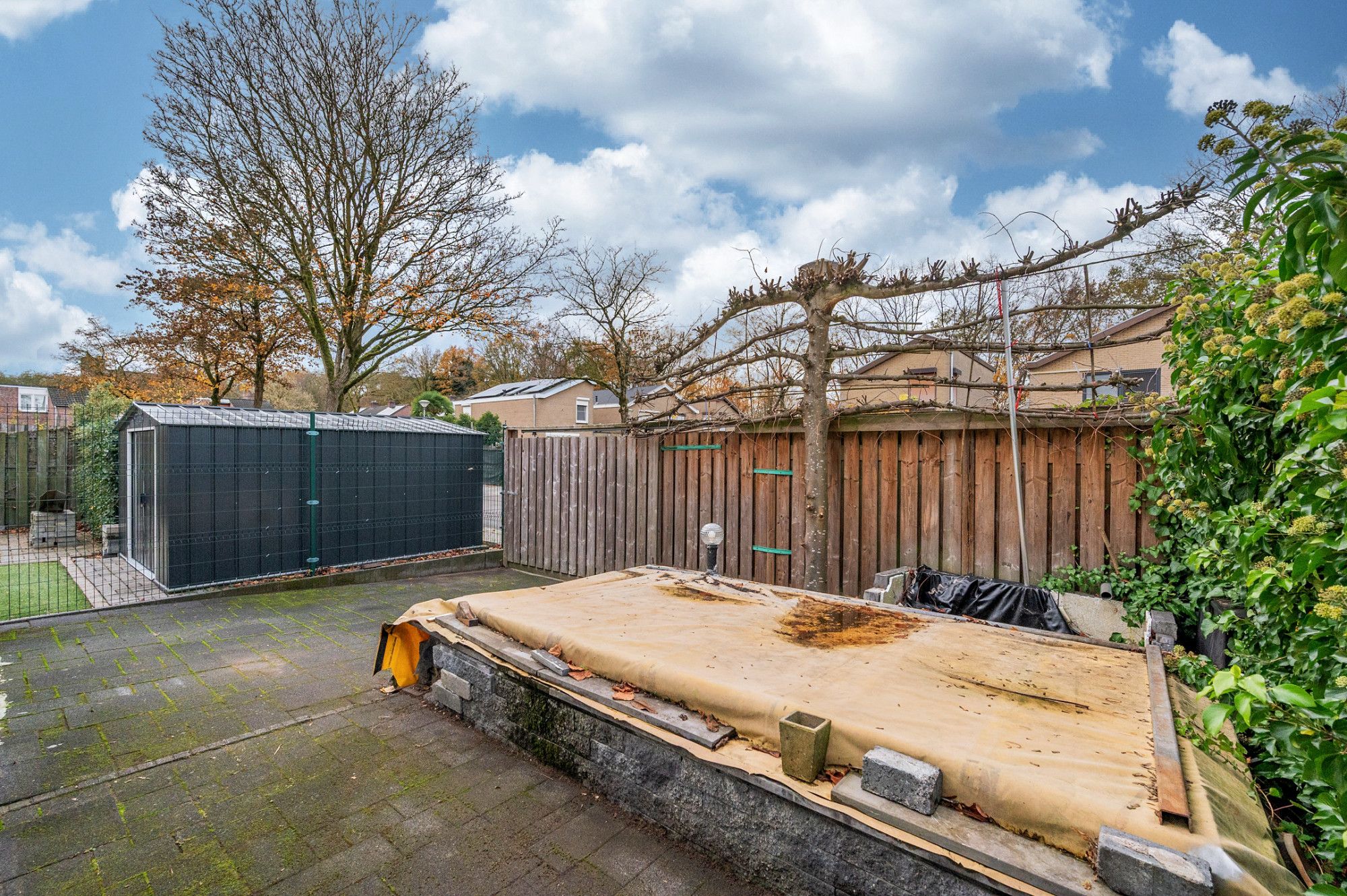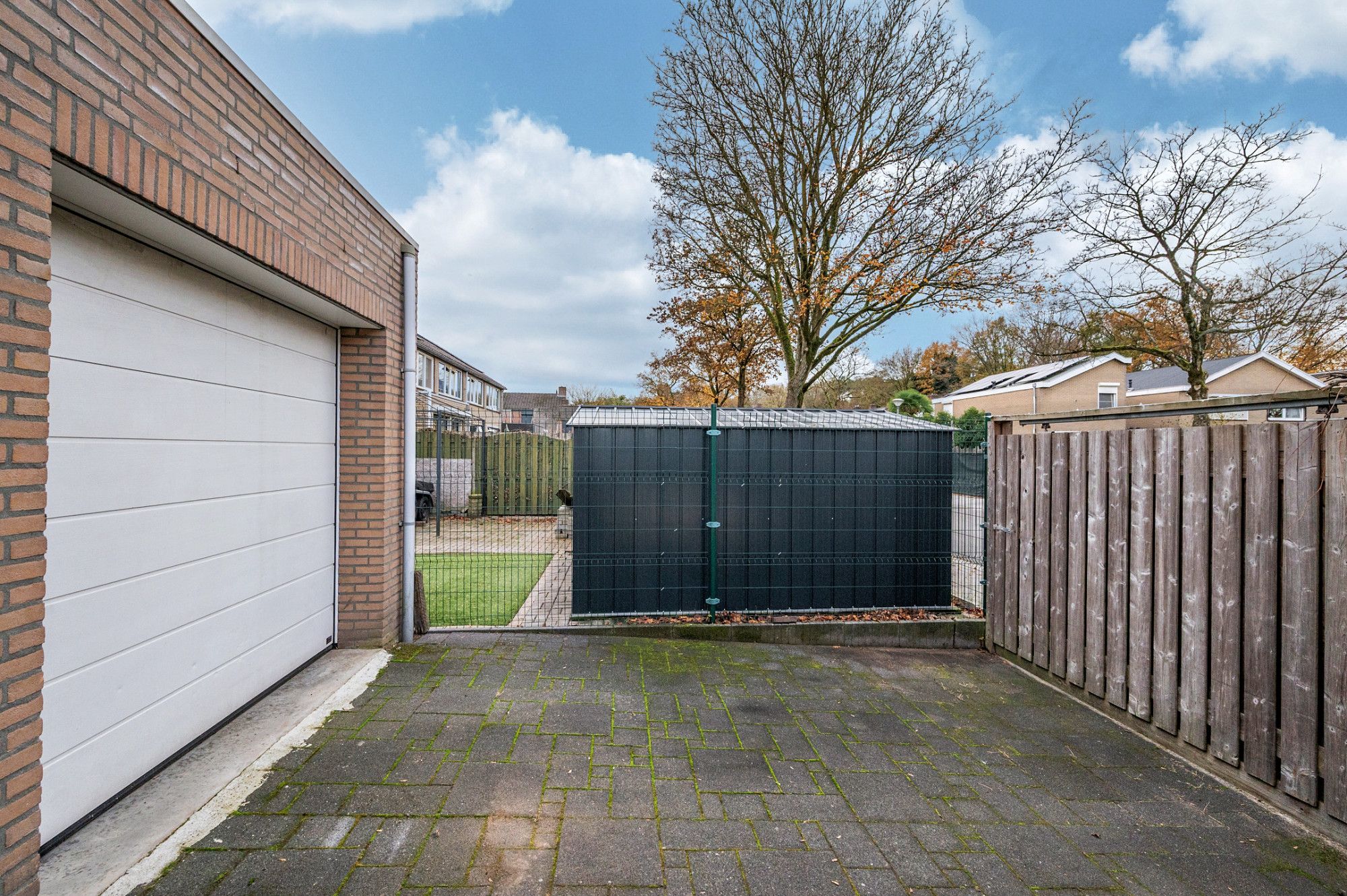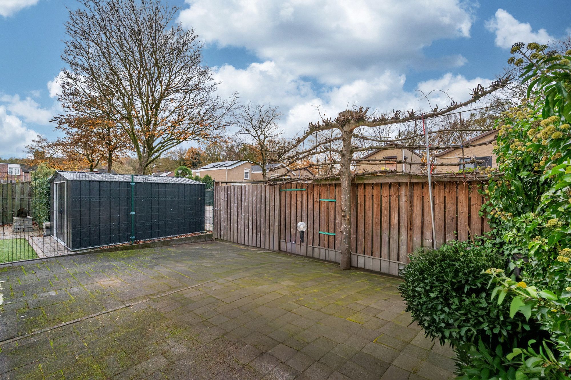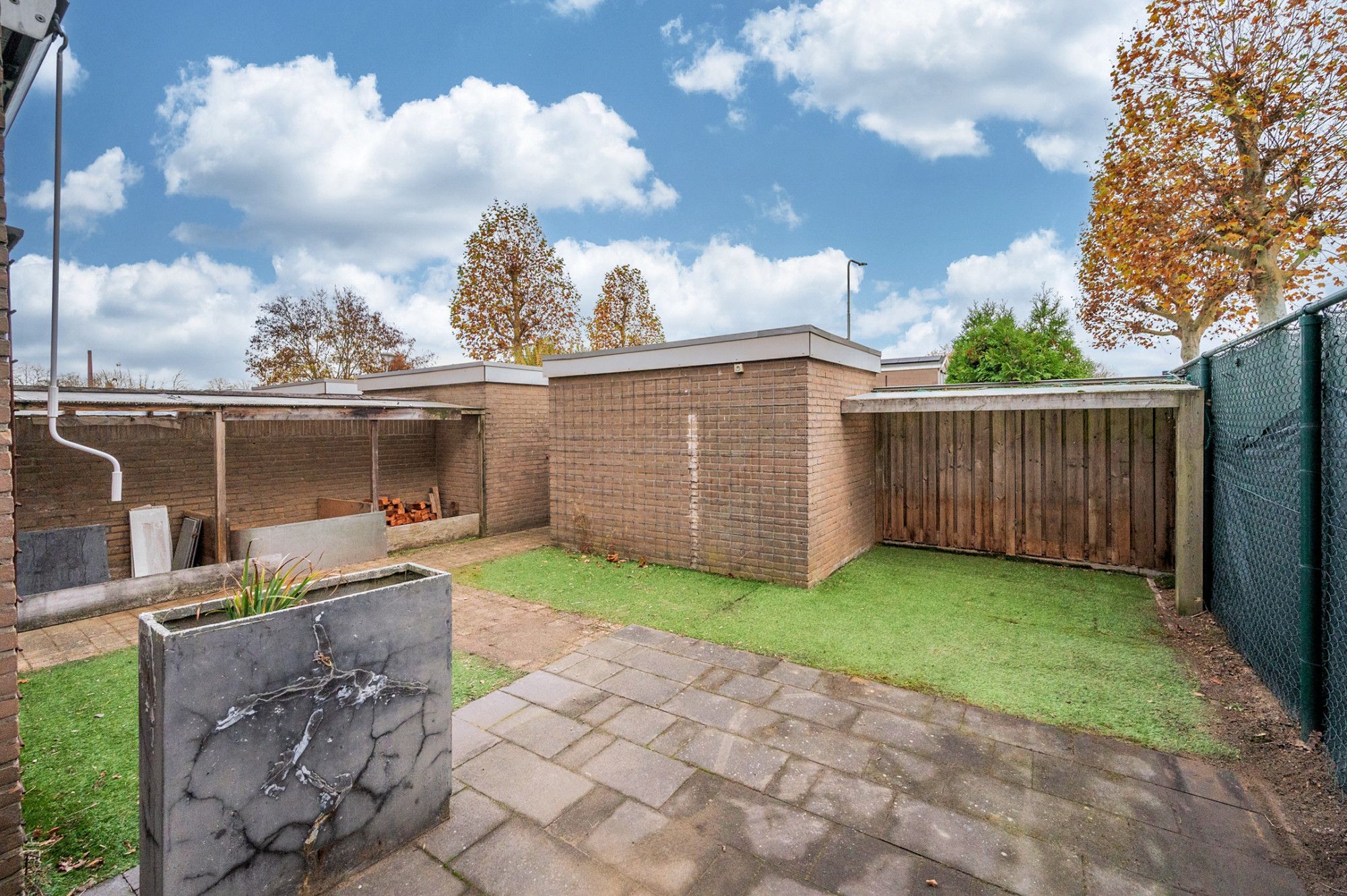 De voortuin is geheel betegeld en voorzien van een gemetselde berging. De achtertuin is op het Oosten gelegen en biedt zeer veel privacy. De achtertuin is deels voorzien van een beklinkerd terras en grotendeels voorzien van een kunstgras. Tevens beschikt de achtertuin ook over een handmatig te bedienen zonnescherm.