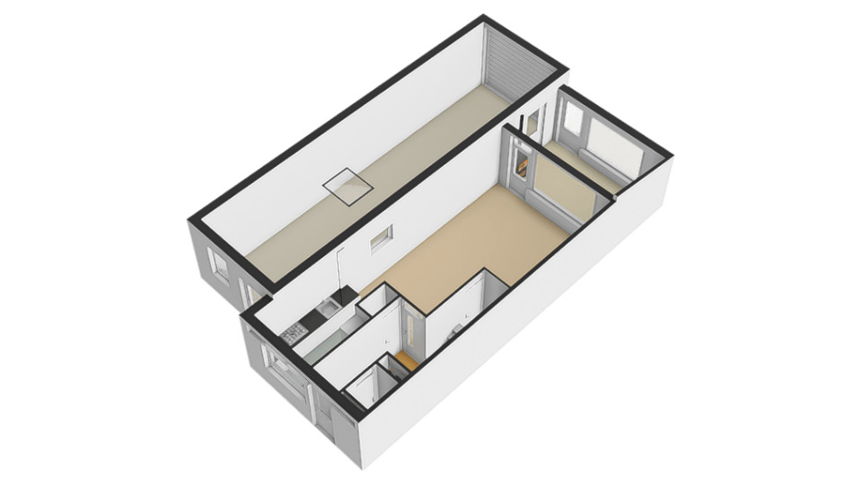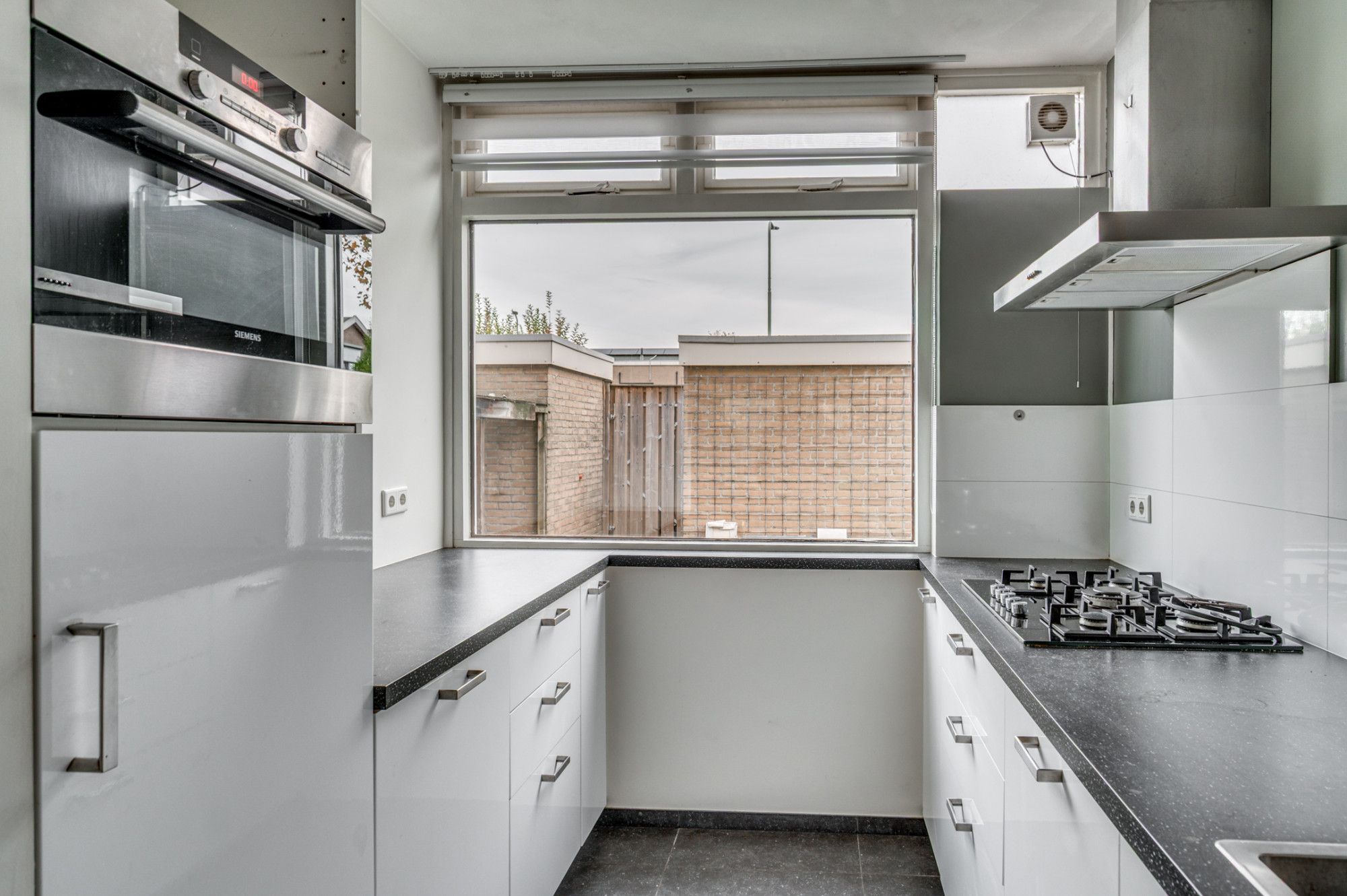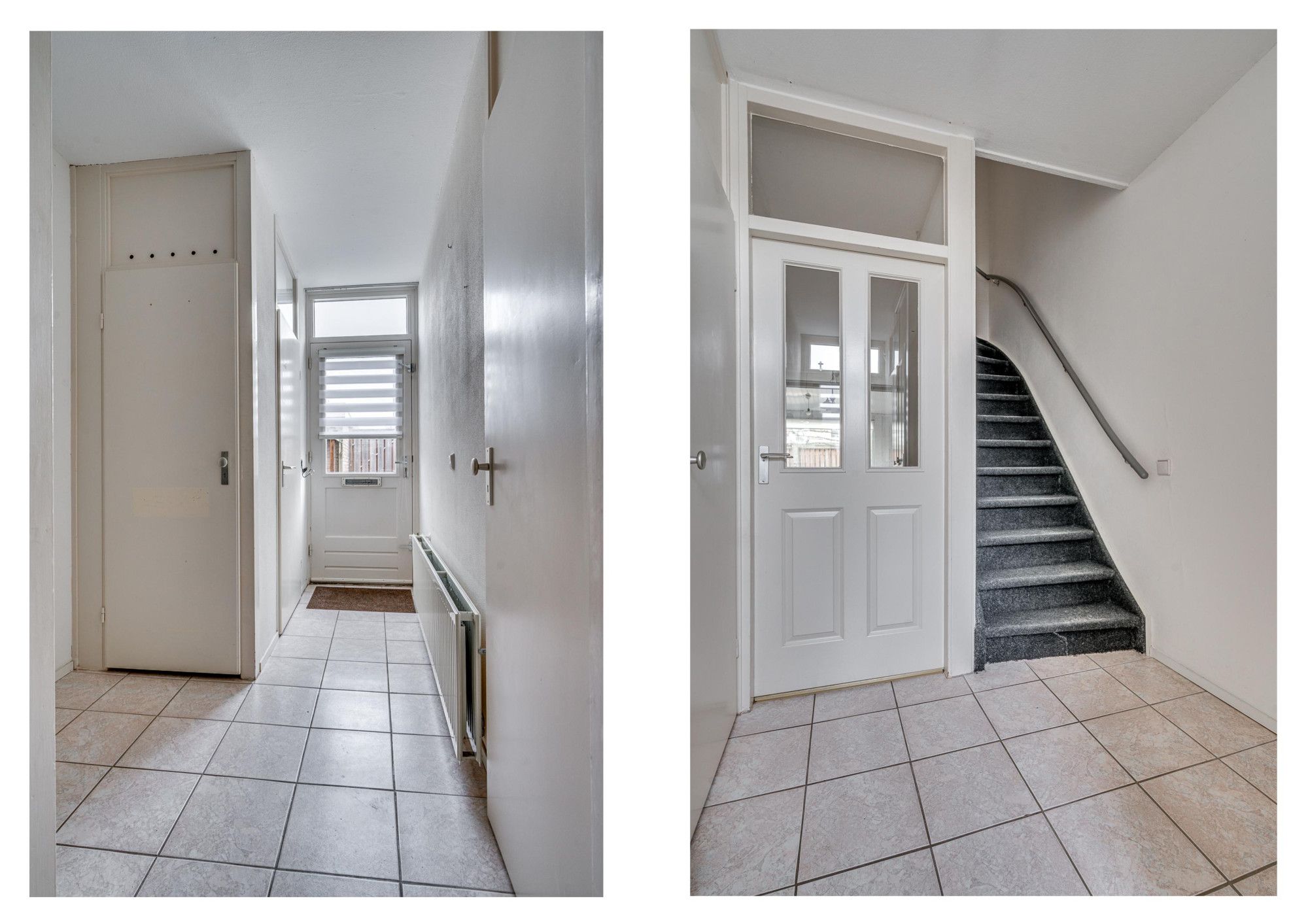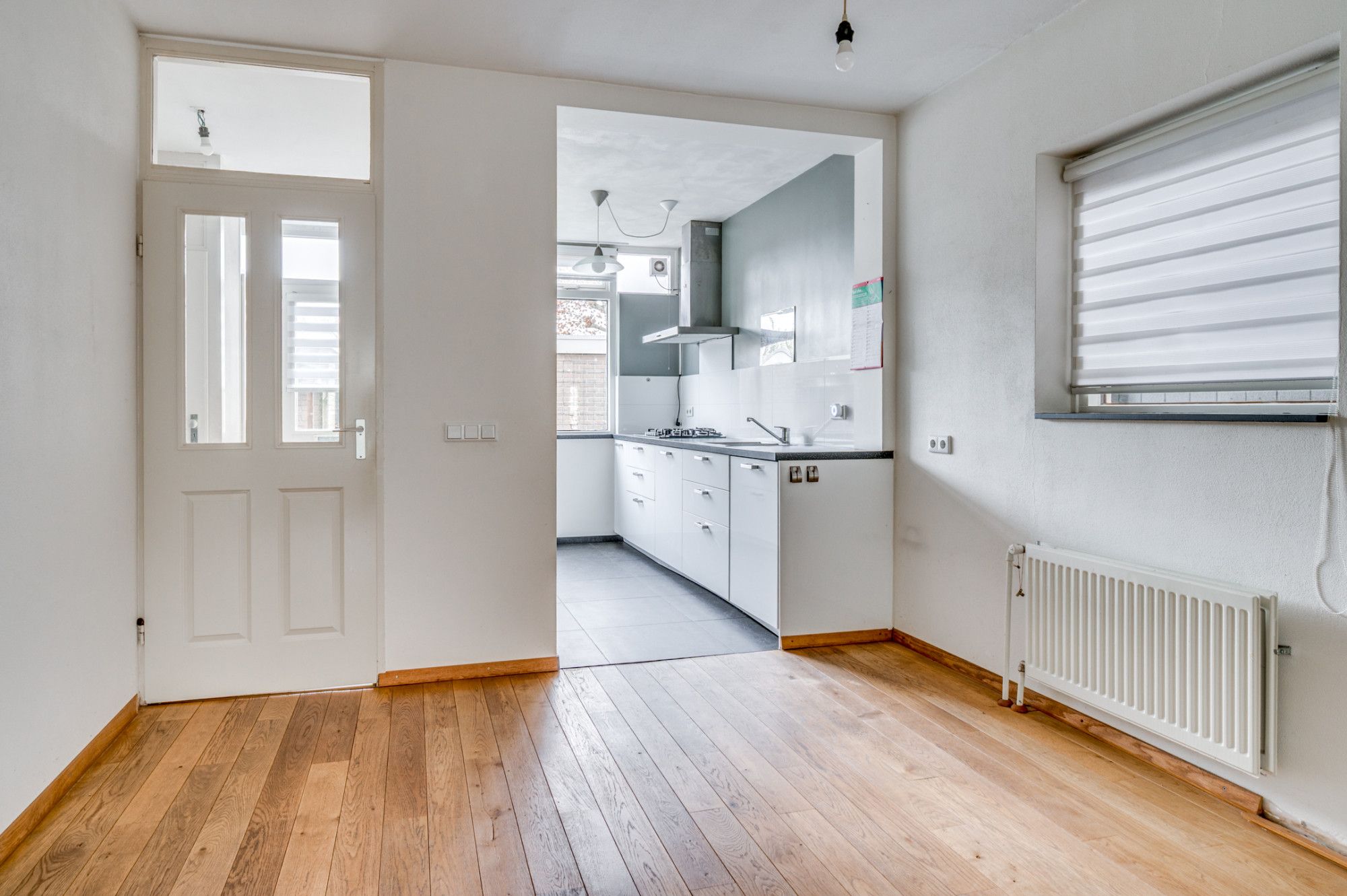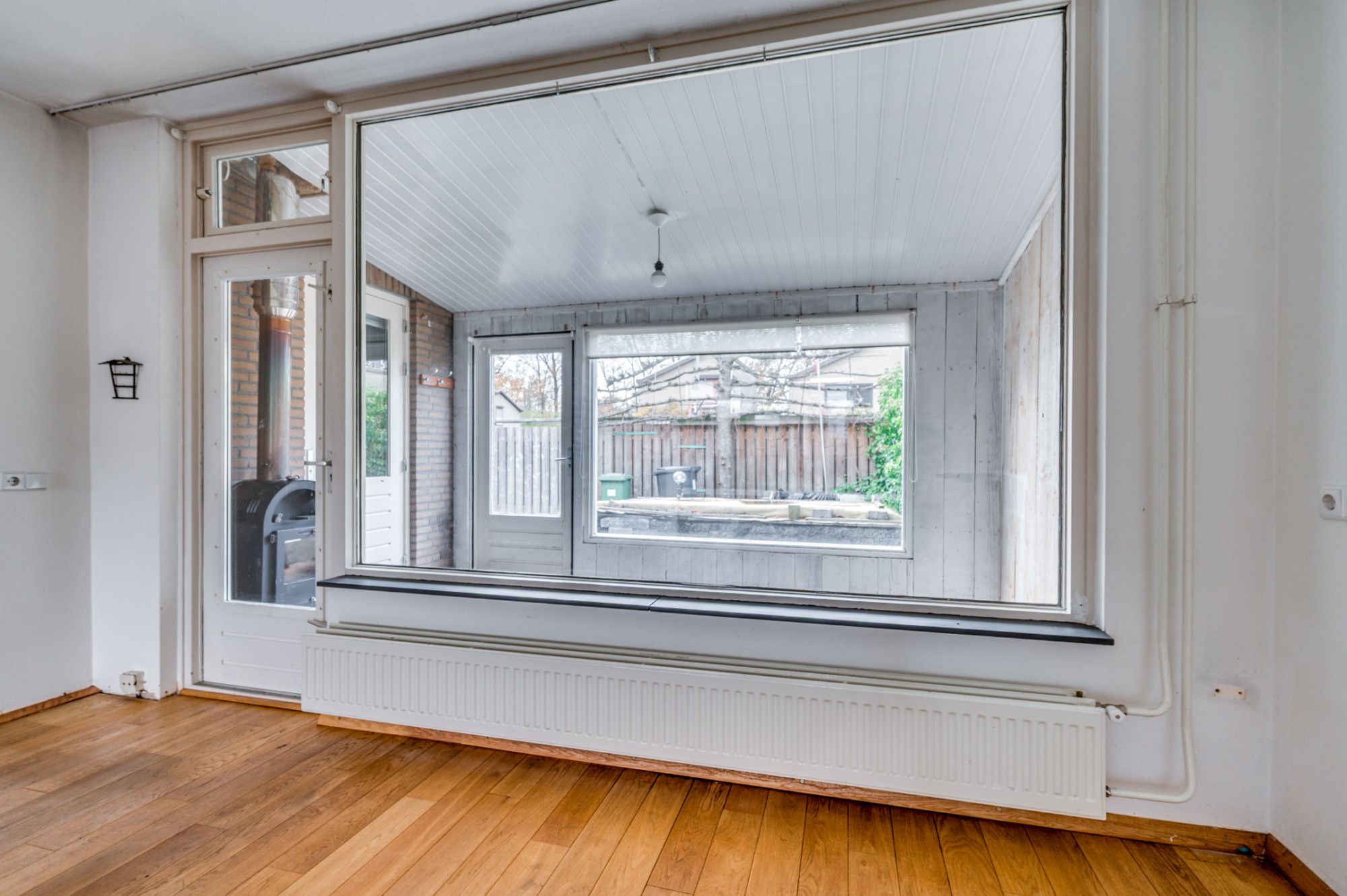 De entree van de woning is vanuit de geheel beklinkerde voortuin te bereiken. De hal geeft toegang tot de separate toiletruimte, meterkast, trapopgang naar de 1e verdieping, muurkast en de woonkamer. De geheel betegeld toiletruimte is voorzien van een zwevend toilet, fonteintje en buitenraam. Middels een loopdeur is de woonkamer met open keuken te bereiken. De open keuken is aan de voorzijde gelegen en voorzien van een 5-pits gasfornuis, afzuigkap, vaatwasmachine, combioven/ magnetron, koelkast en veel opbergruimte. De ruime woonkamer geniet veel lichtinval en biedt middels een loopdeur toegang tot de serre. De serre geeft toegang tot de tuin en inpandige garage.
