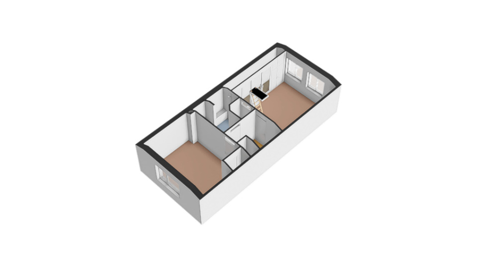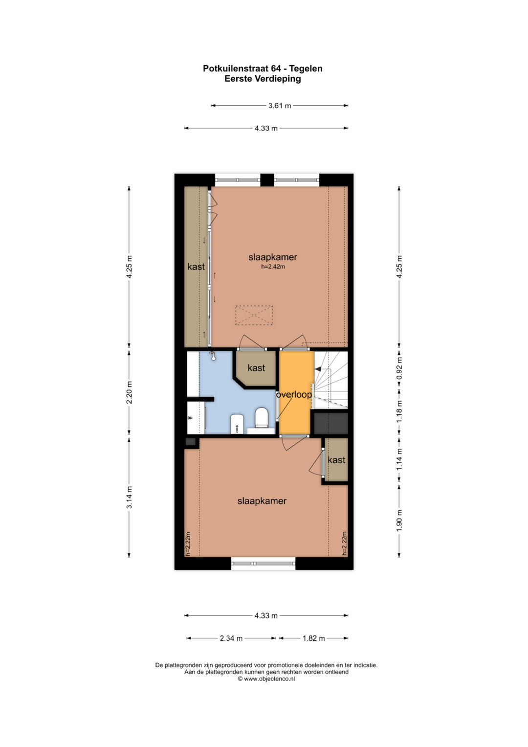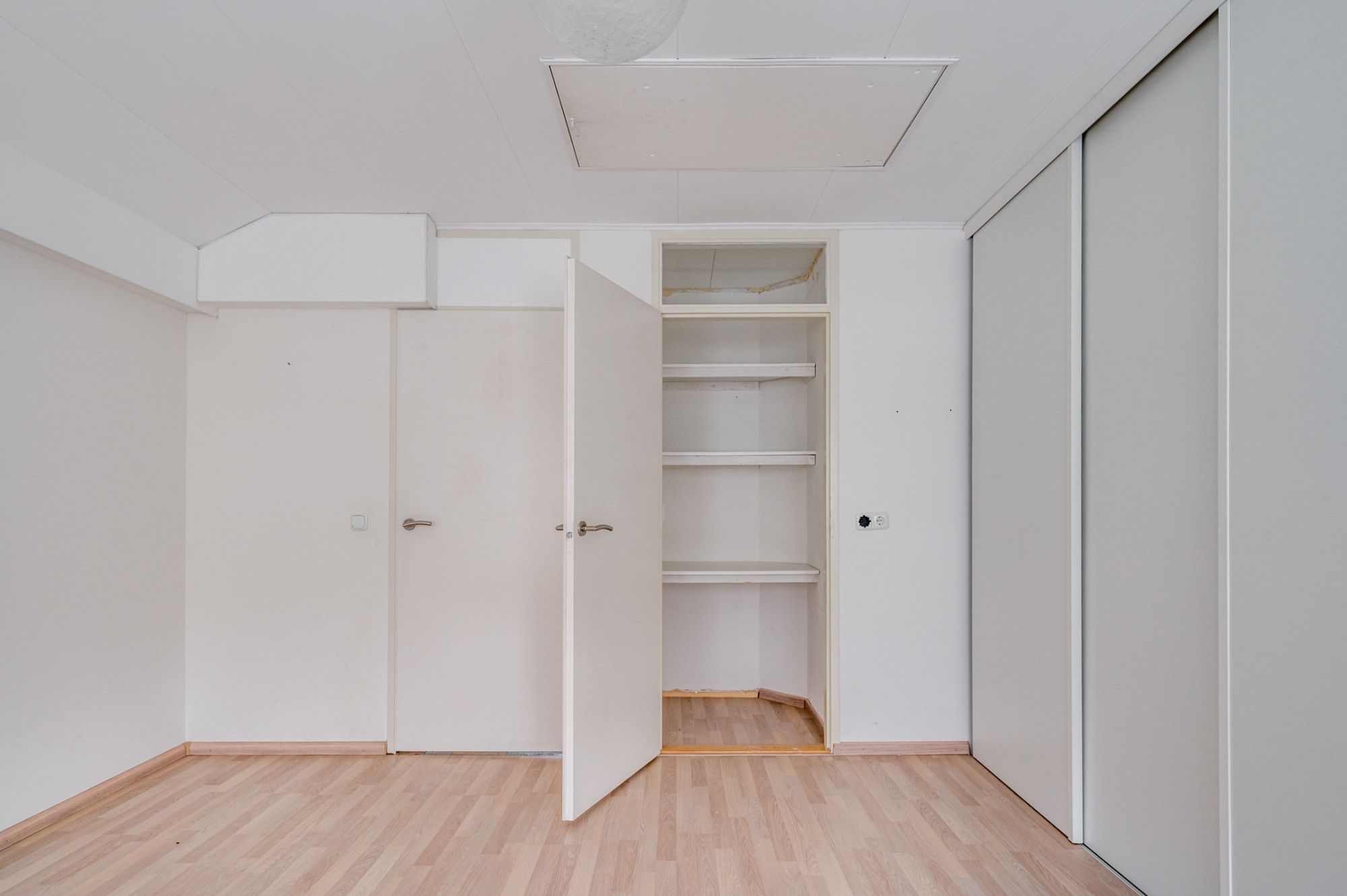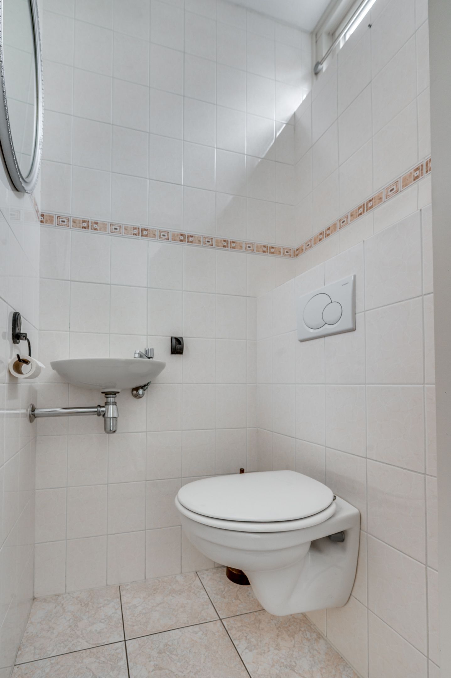 De overloop geeft toegang tot 2 slaapkamers en de badkamer. De overloop en 2 slaapkamers zijn voorzien van een lichte laminaatvloer. De slaapkamers zijn ca. 13,5m² en ca. 18,5m² groot. De masterbedroom aan de achterzijde van de woning beschikt over een grote inbouwkast, muurkast en de vlizotrap naar de bergzolder. De geheel betegelde badkamer is voorzien van een inloopdouche, wastafel met meubel, zwevend toilet, bidet en designradiator.