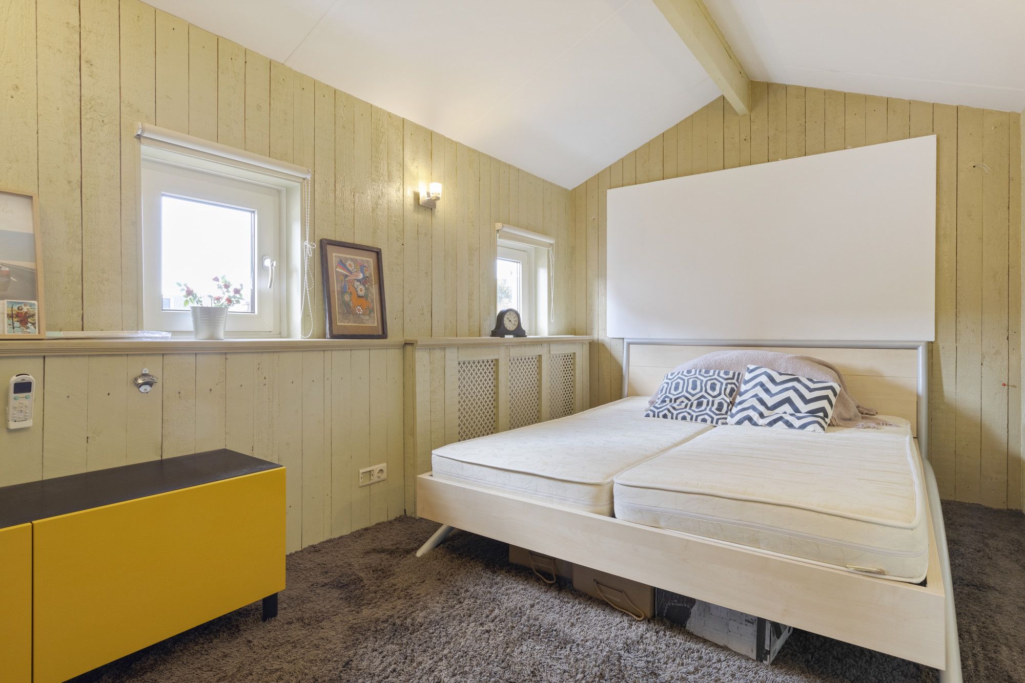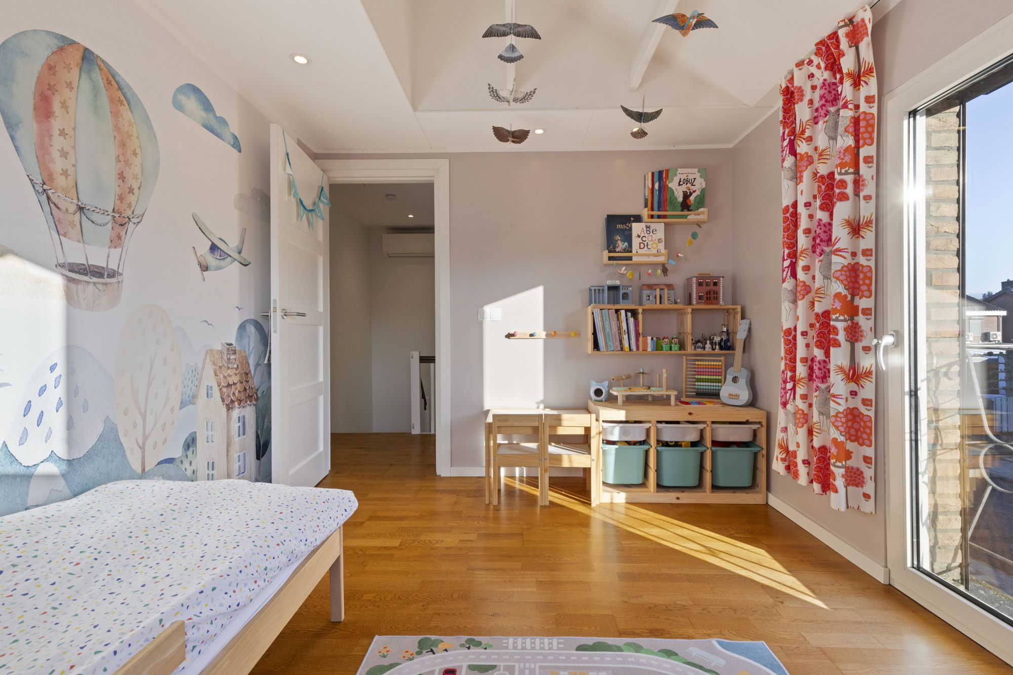 Aansluitend de bijkeuken met witgoedaansluitingen en een trap naar de multifunctionele vierde slaapkamer / werkkamer / speelkamer / hobbyruimte, voorzien van airco.