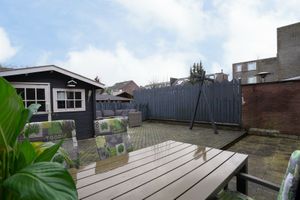 En dan de royale onderhoudsvriendelijke achtertuin die middels een brandgang te bereiken is.