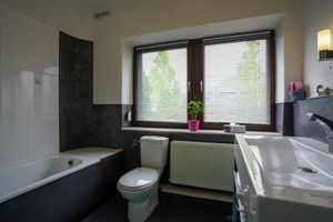 Moderne badkamer(6m2) met ligbad wastafel en tweede toilet.